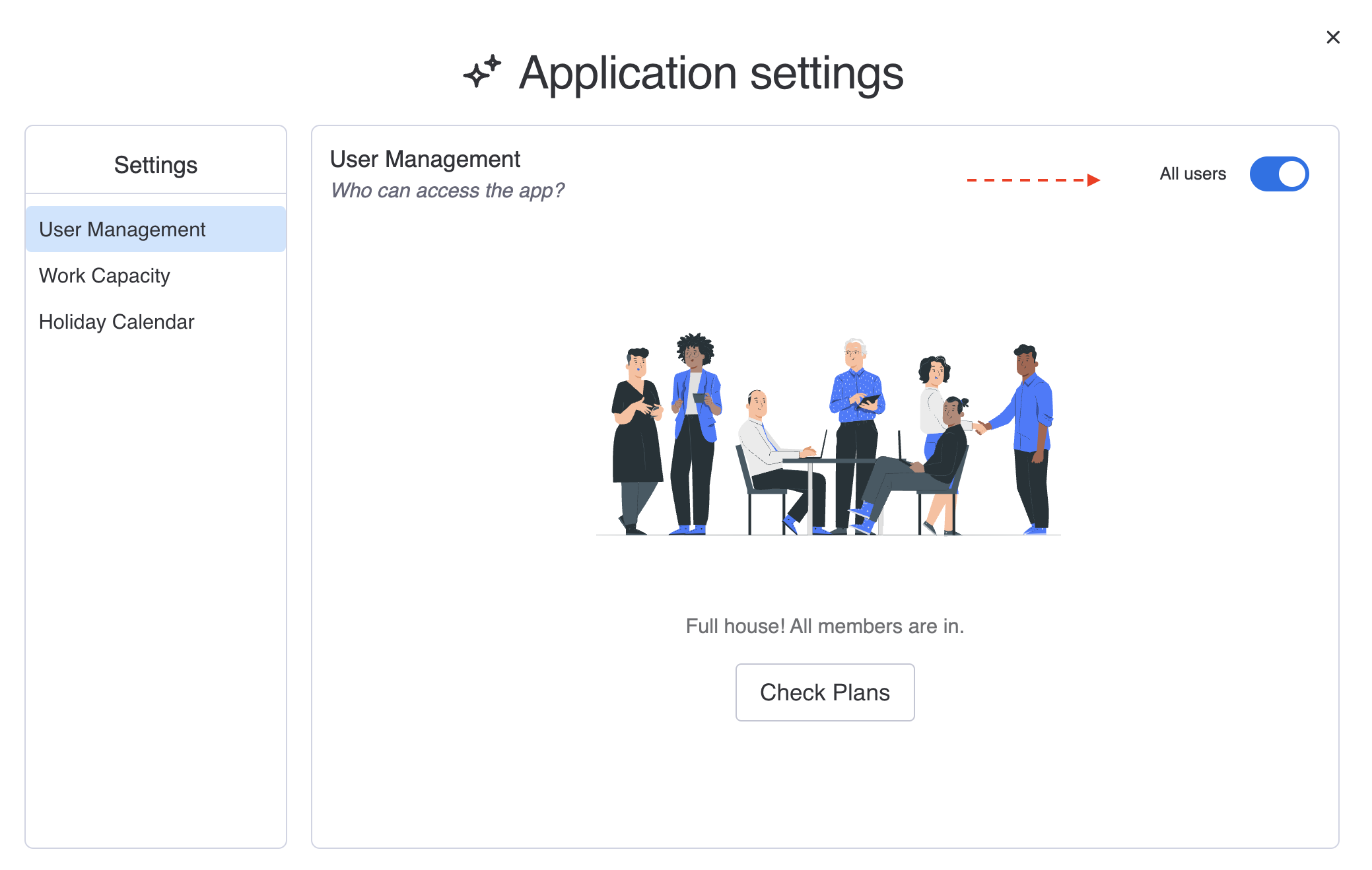With the new TeamBoard app pricing model (effective from Dec 12, 2024), you can now select a plan that fits your company’s needs. User management lets you control which team members can access the TeamBoard app, helping you optimize costs.