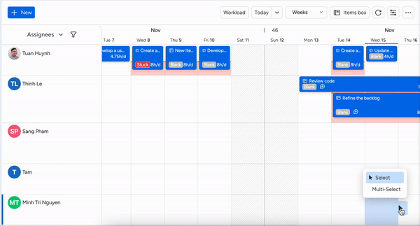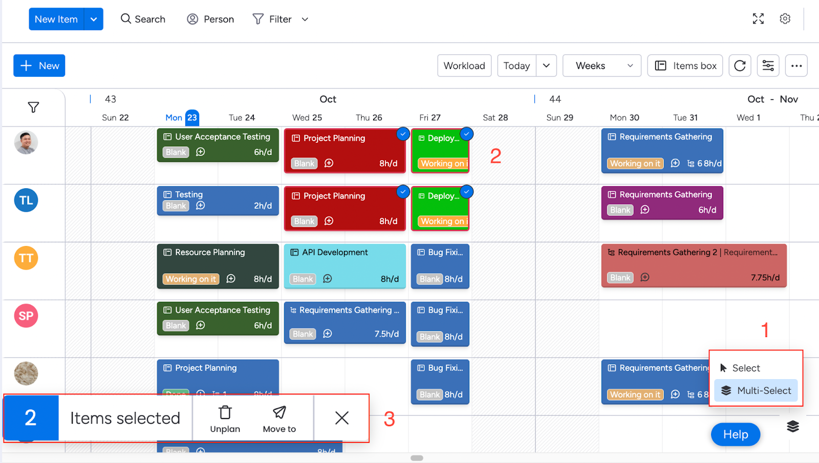 Give your users the power to effortlessly select and manage multiple items simultaneously. Allow users to bulk unplan, move, and rearrange tasks.