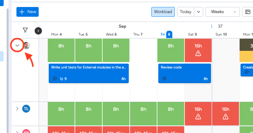 Tip: You can click the archor icon next to avatar each row to expand the row to see the detail plan in workload mode