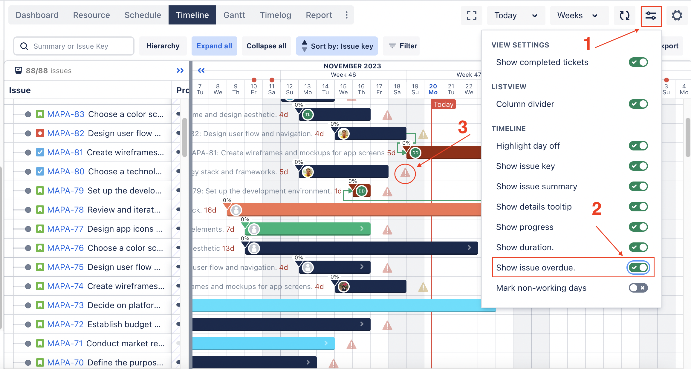 Add an option to highlight overdue tasks on Timeline, Schedule, and Gantt.