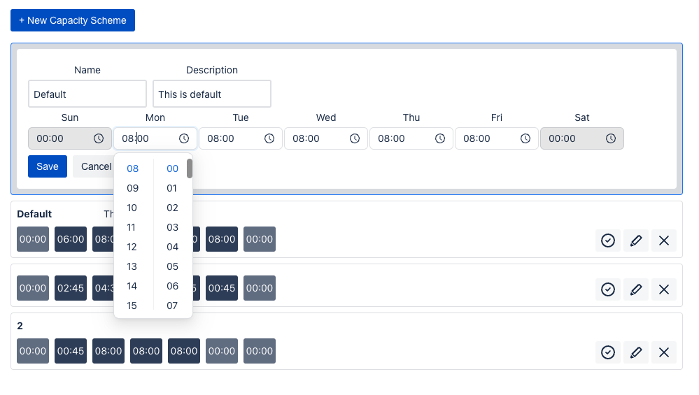 Example: For a part-time employee working an 80% schedule, you can accurately set their daily capacity to align with their actual working hours, ensuring more accurate resource planning and allocation.