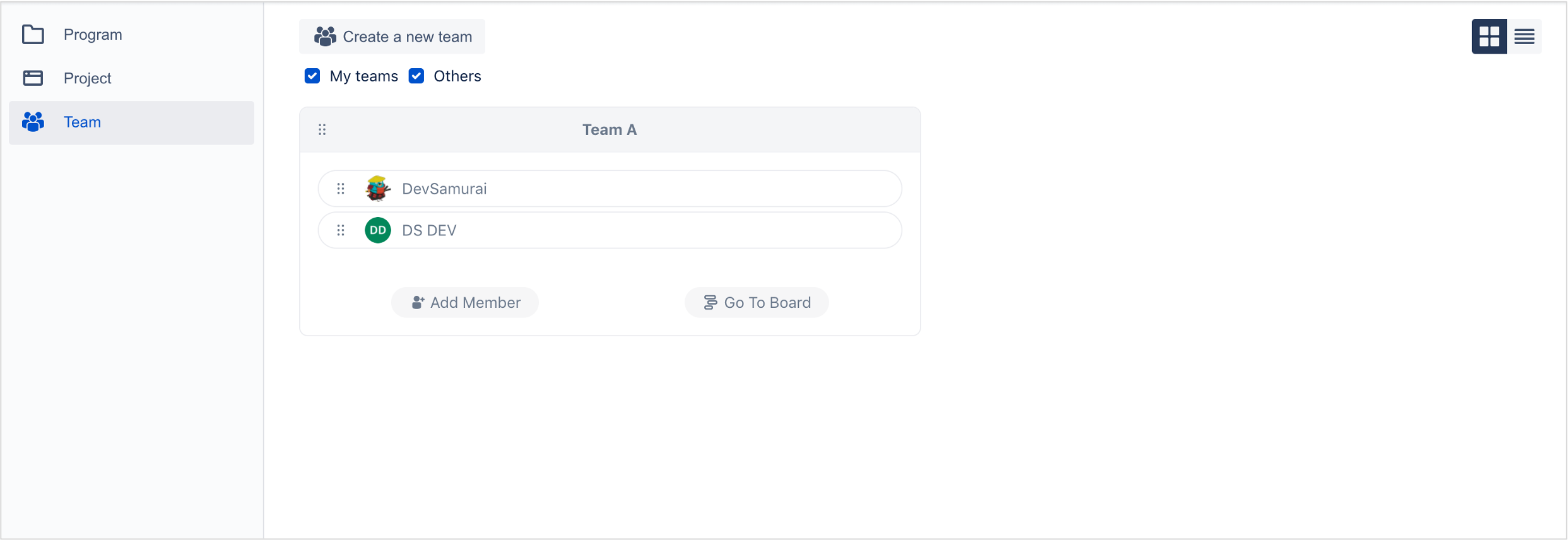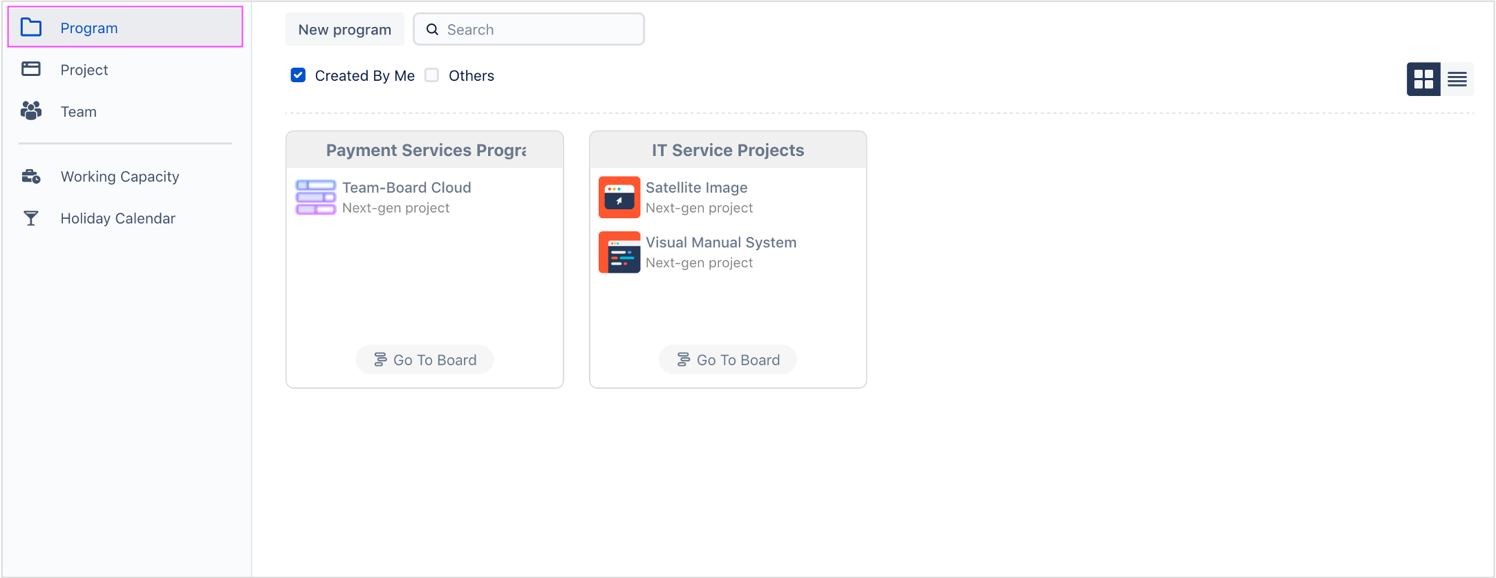 Program board is for program manager to plan resources for group projects in one place.