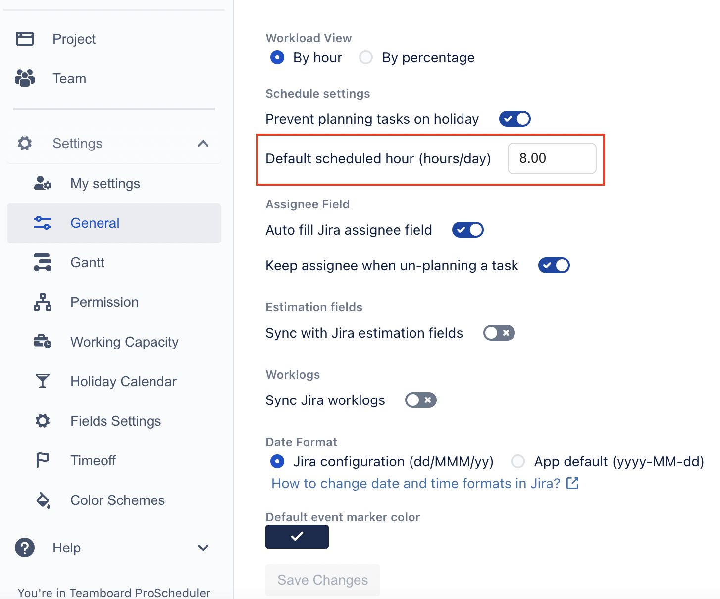 App setting: Default schedule hour