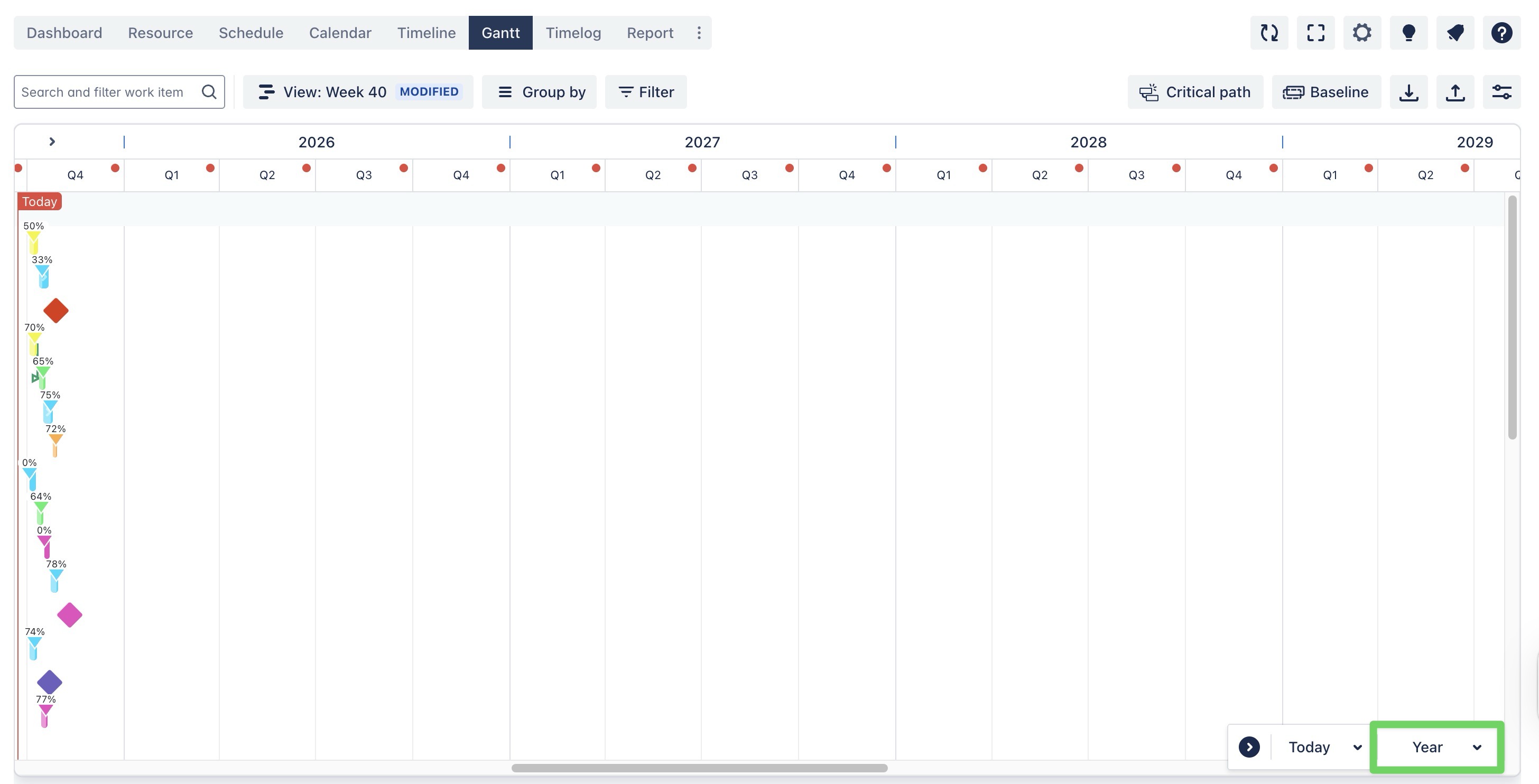 Year View This view is used for high-level, long-term strategic planning, helping teams and stakeholders visualize progress and dependencies over an entire year.. | ![]() |
