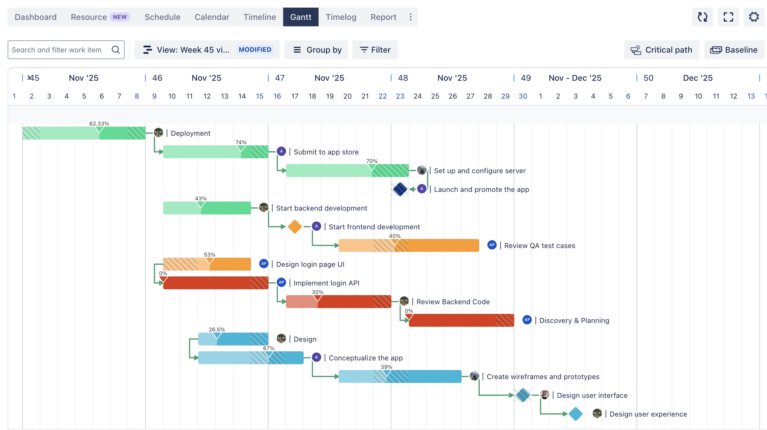 You can manage dependencies in both Gantt and Timeline boards using the same steps. This guide focuses on managing dependencies in the Gantt Board.