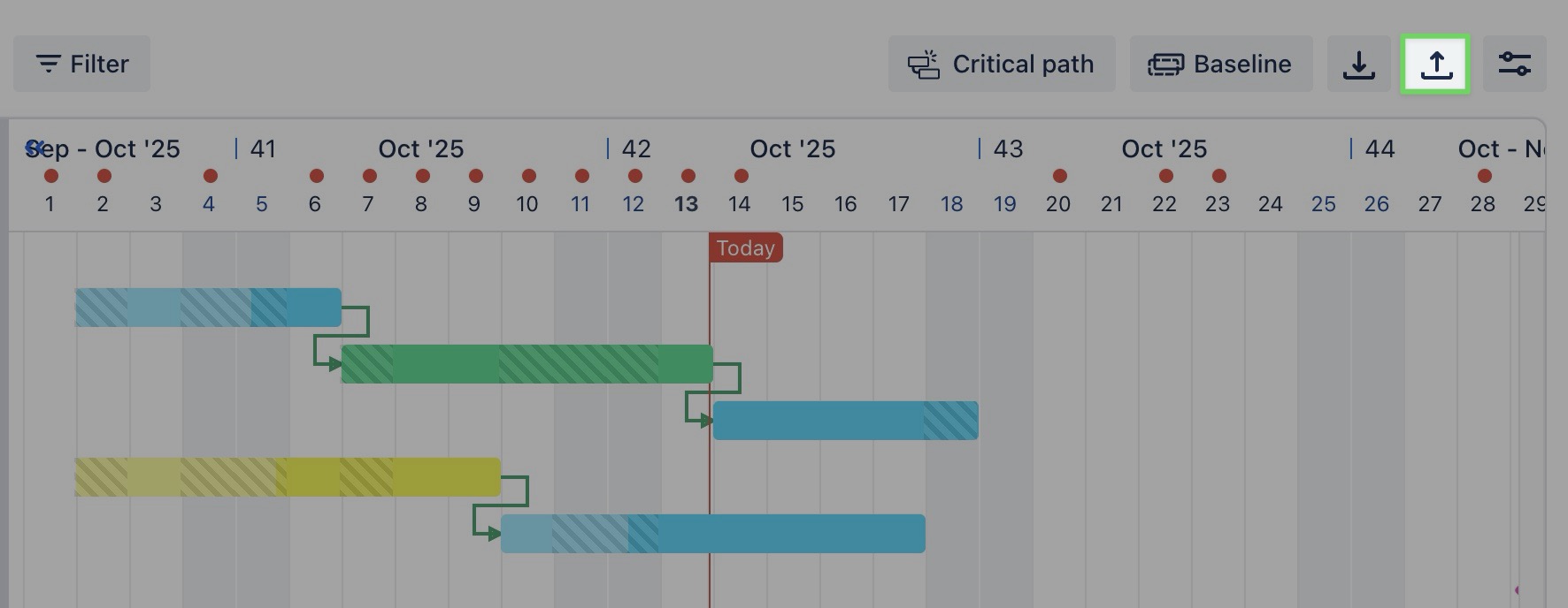 The Export Feature allows you to generate reports of your tasks in both Excel and PDF formats. You can customize the exported data by selecting specific columns, adjusting date ranges, and even choosing how you want to display the information. This is useful for generating project reports, data analysis, or sharing visual task schedules.