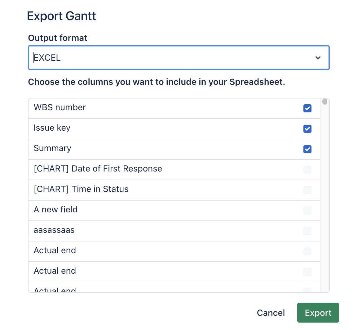 Only the columns that are visible in the table can be selected for export. Make sure to add the desired columns to the table before proceeding.