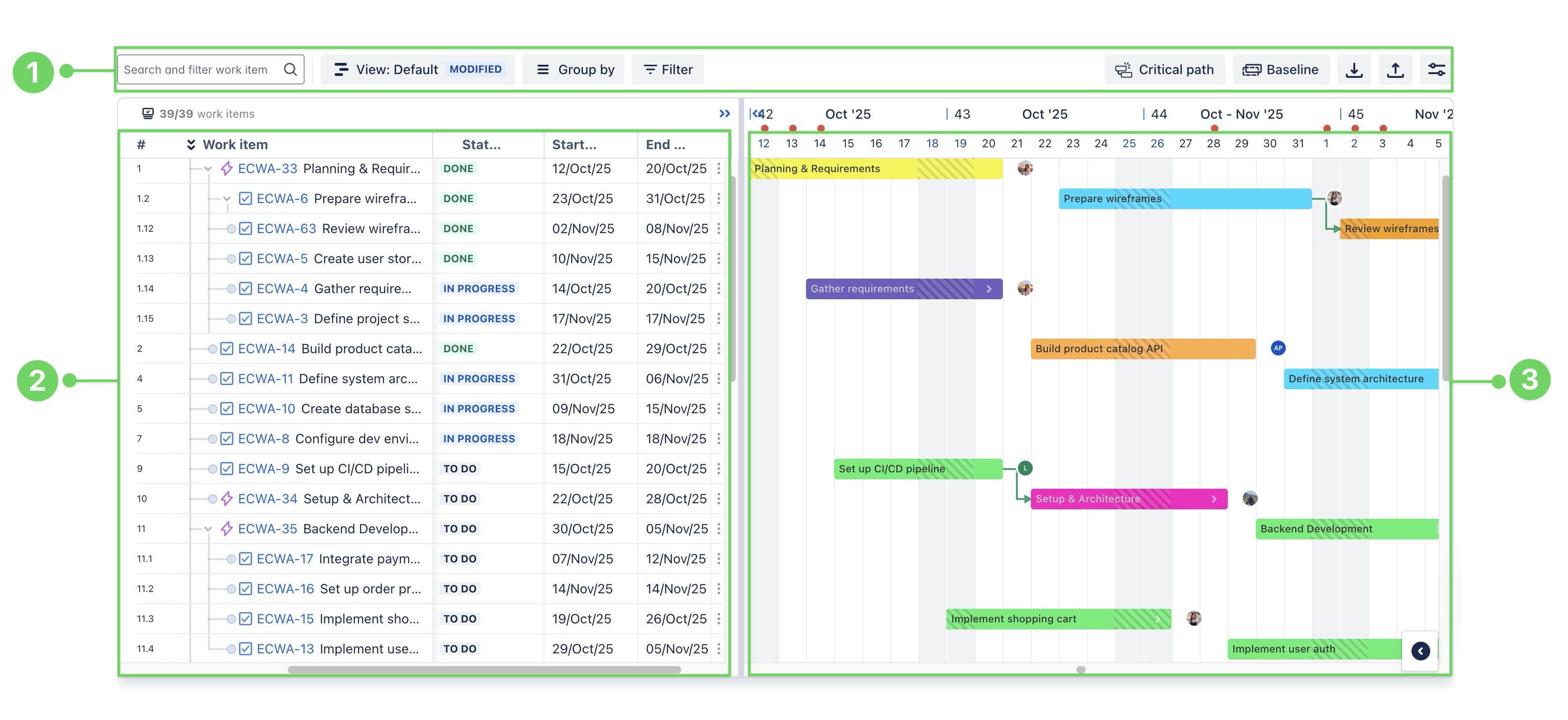 3 | Group work items by categories like status, assignee, priority, or sprint, etc., to gain a clearer overview of your project. | |