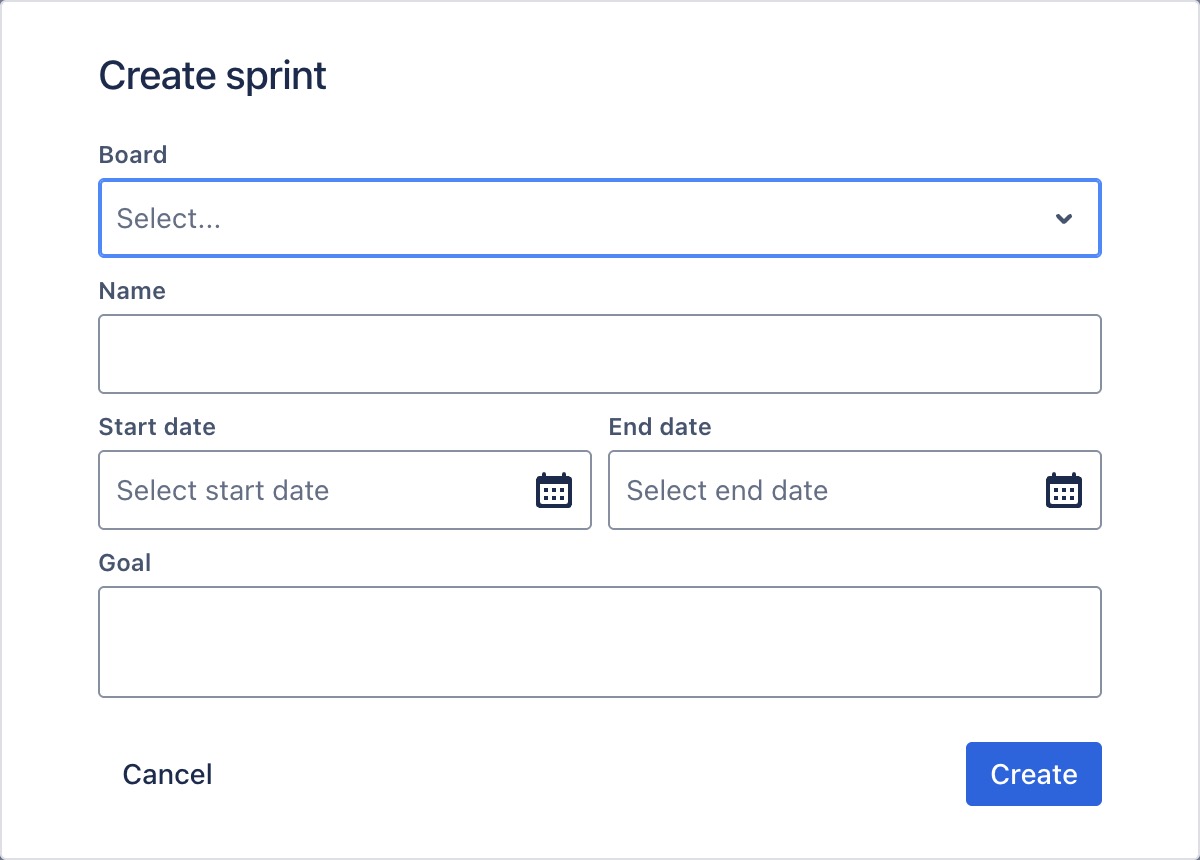 Start Date and End Date: Specify the sprint’s start and end dates.