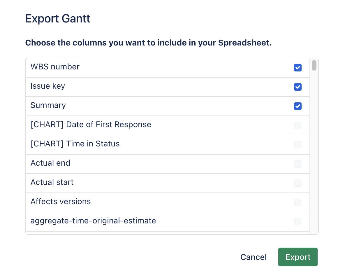 The export feature offers a customizable column selection, enabling you to include only the relevant data in your spreadsheet.