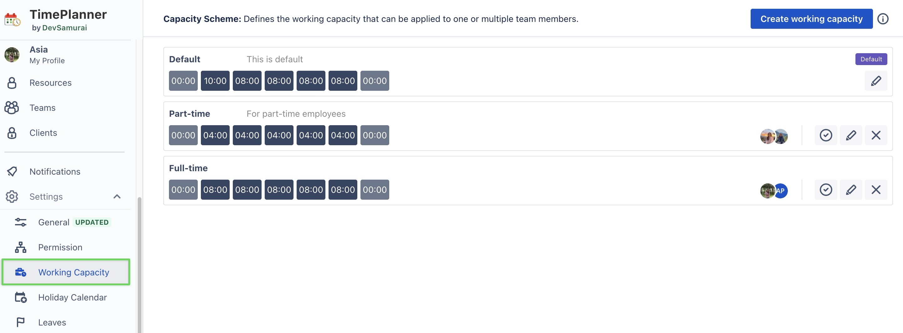 Configure Working Capacity in TimePlanner