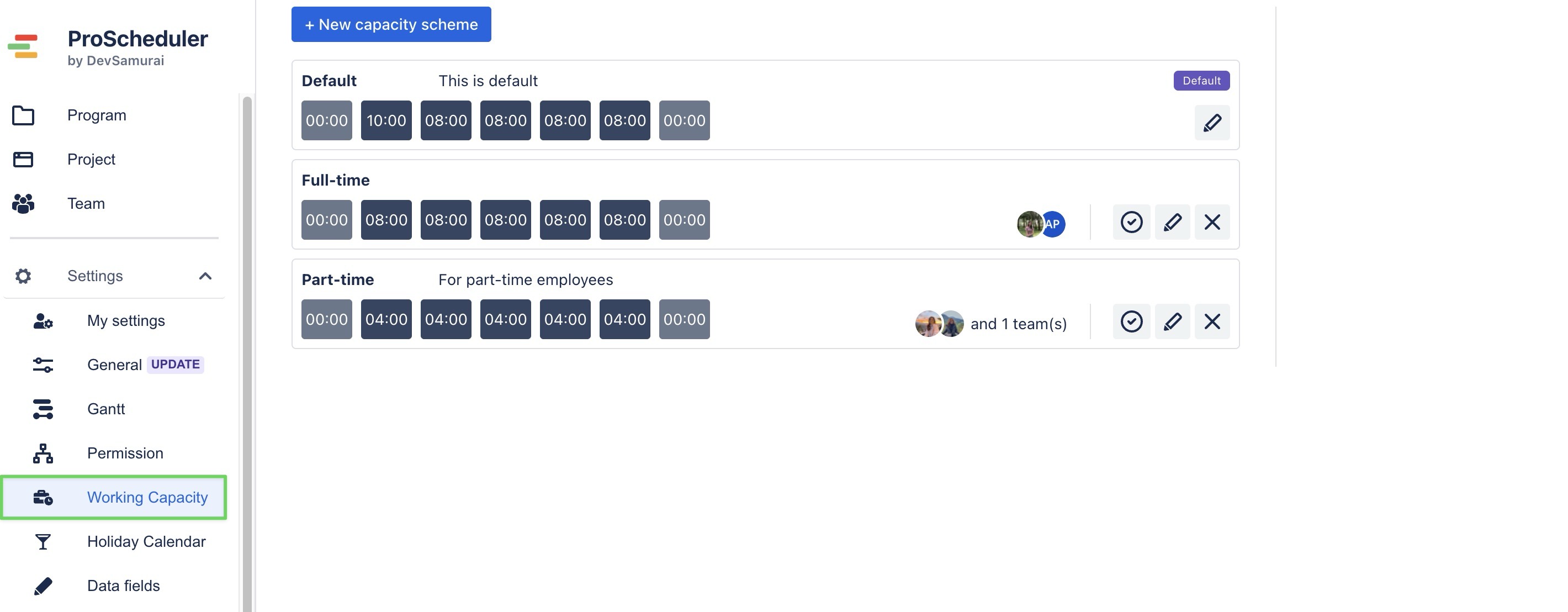 Configure Working Capacity in ProScheduler