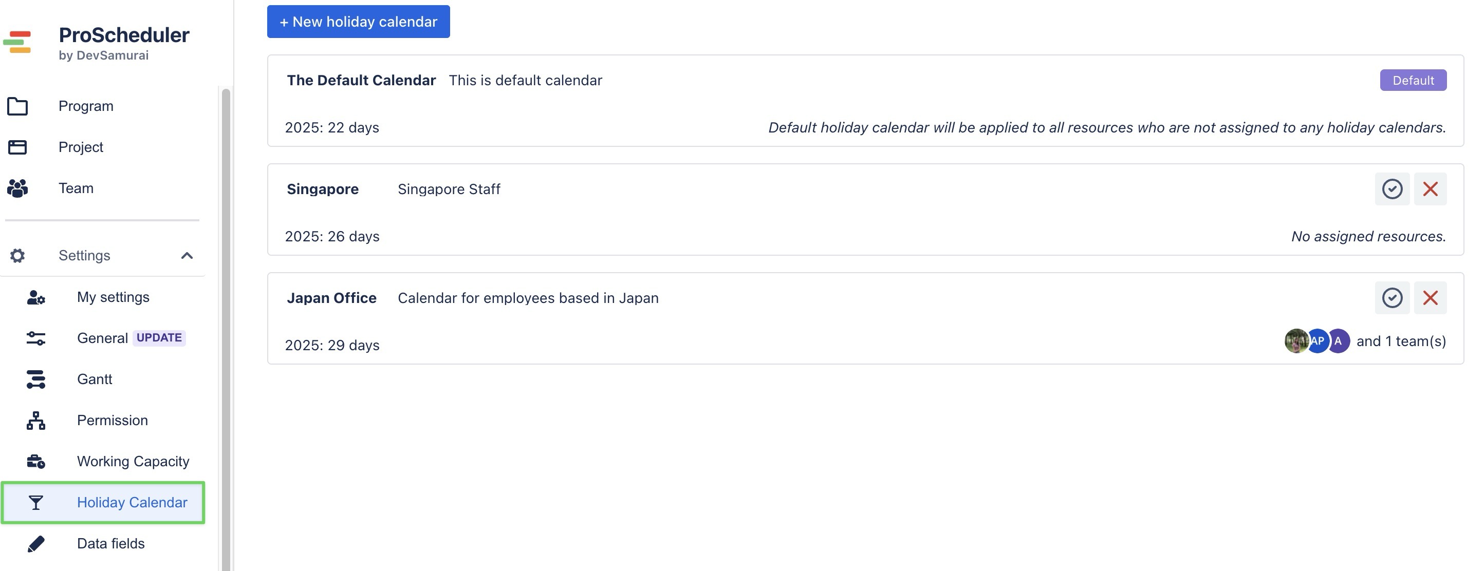 Configure Holiday Calendar in ProScheduler
