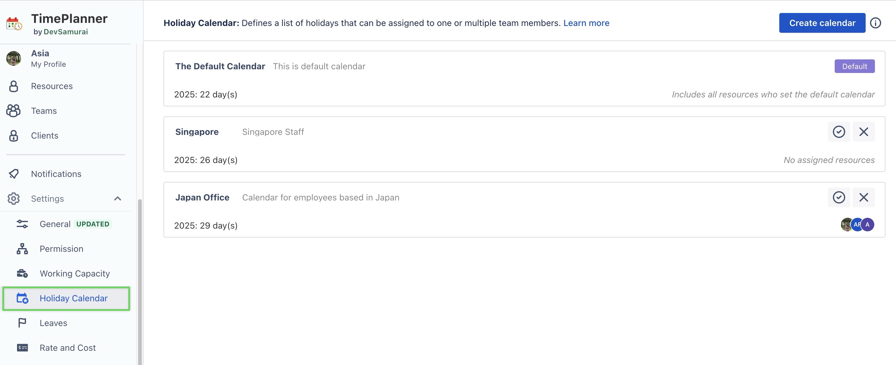 Configure Holiday Calendar in TimePlanner