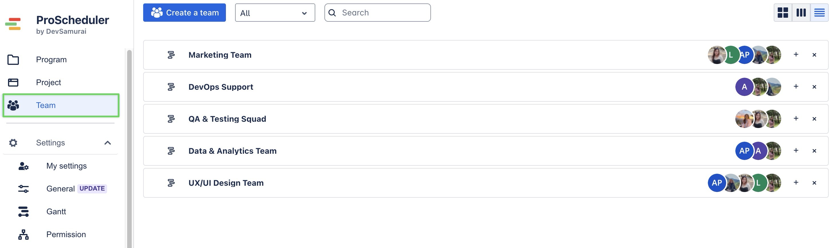 Create teams in ProScheduler