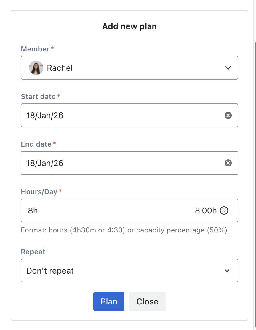 This allows planning to automatically adapt to different daily capacities without manually adjusting hours.