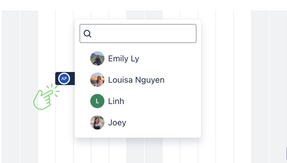 Click the assignee icon to change the assigned team member.
