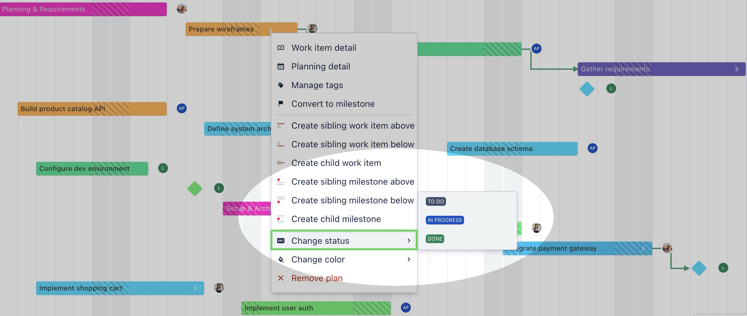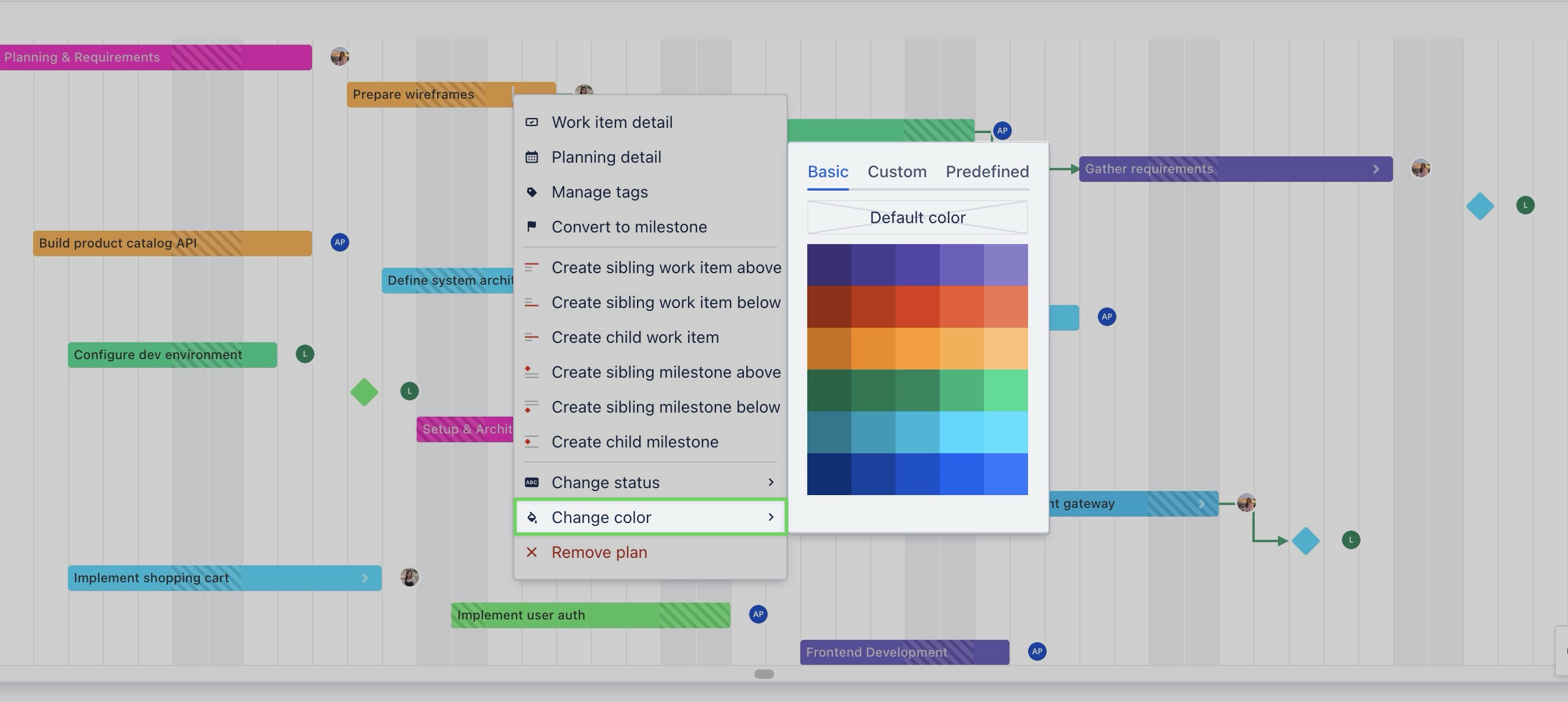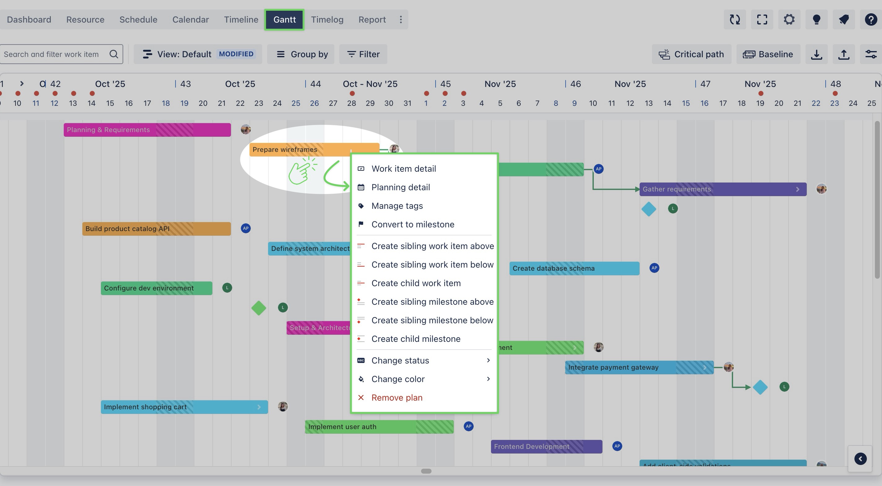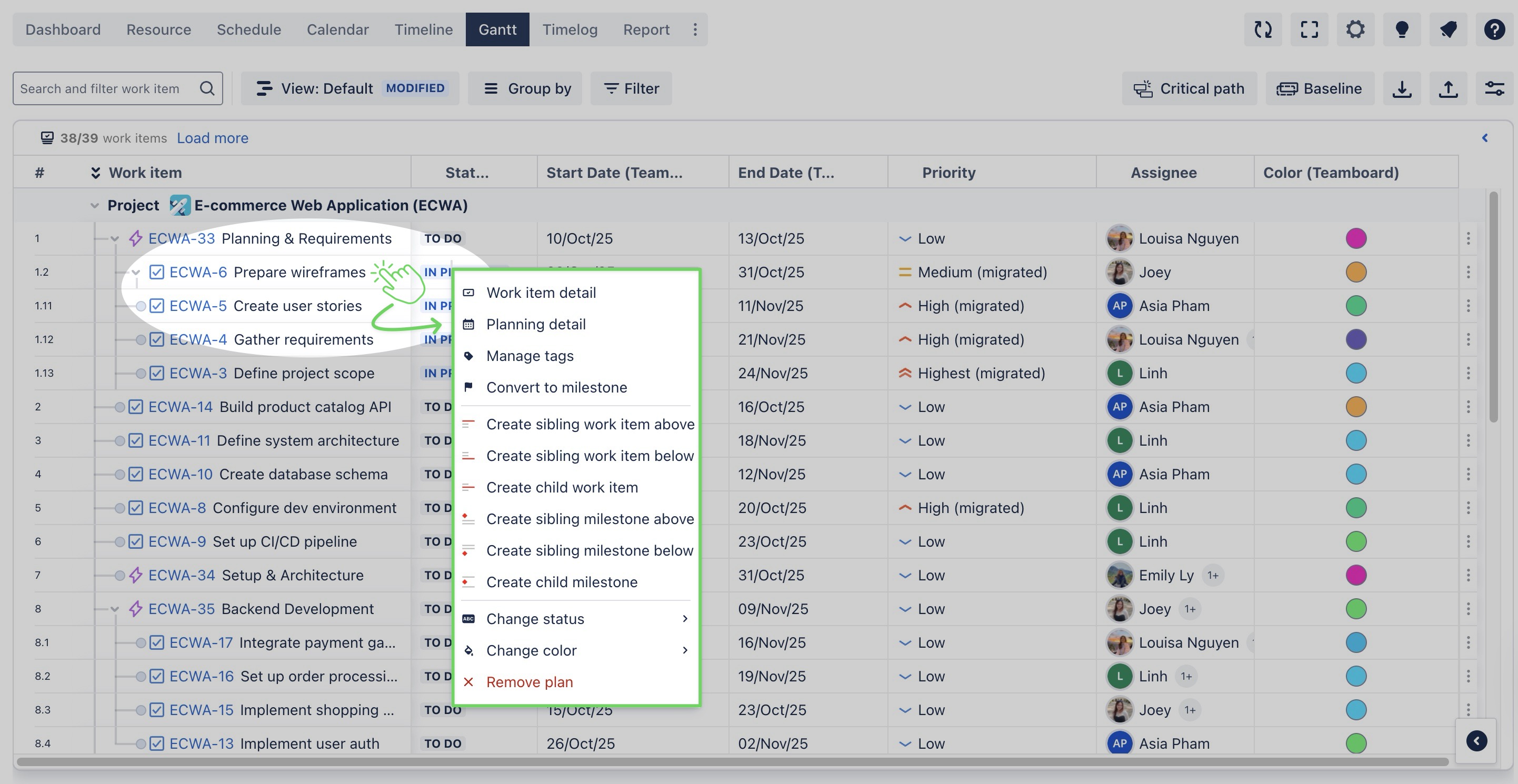 From the Gantt Board, right-click on a task or milestone to open the context menu.