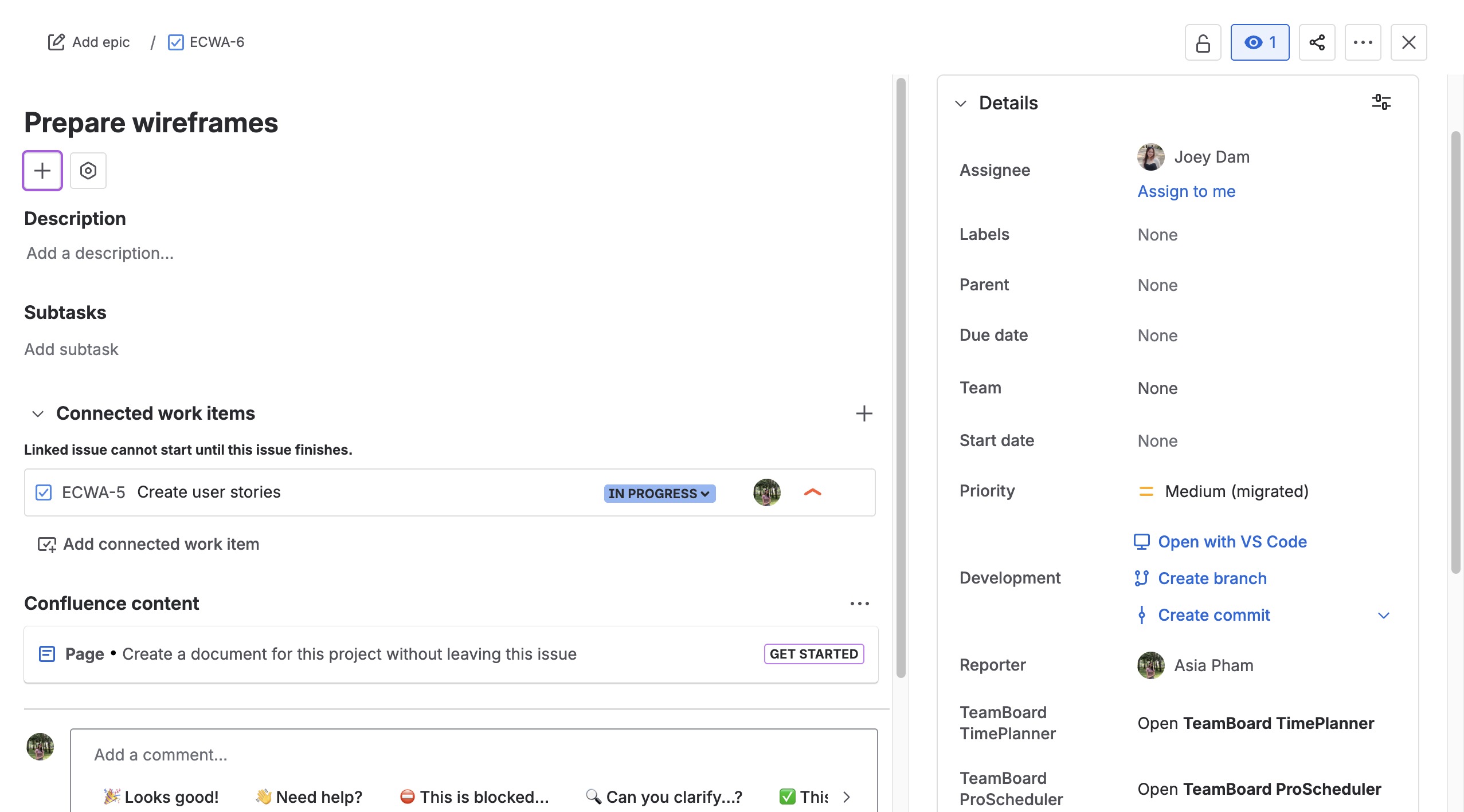 Select the work type (e.g., Epic, Task, Story, Bug).