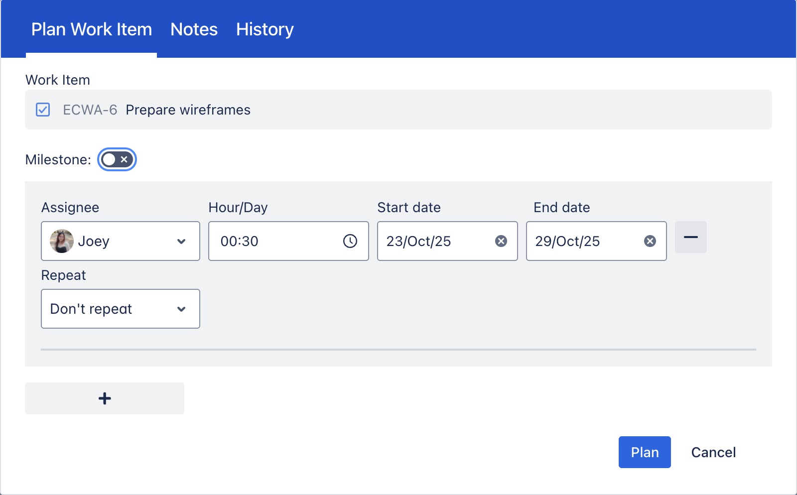 On the Gantt view, click on a timeline cell to open the Detailed Planning Dialog