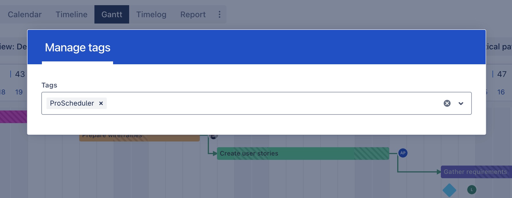 β Add or remove tags to categorize and filter tasks on the Gantt Board. | ![]() |