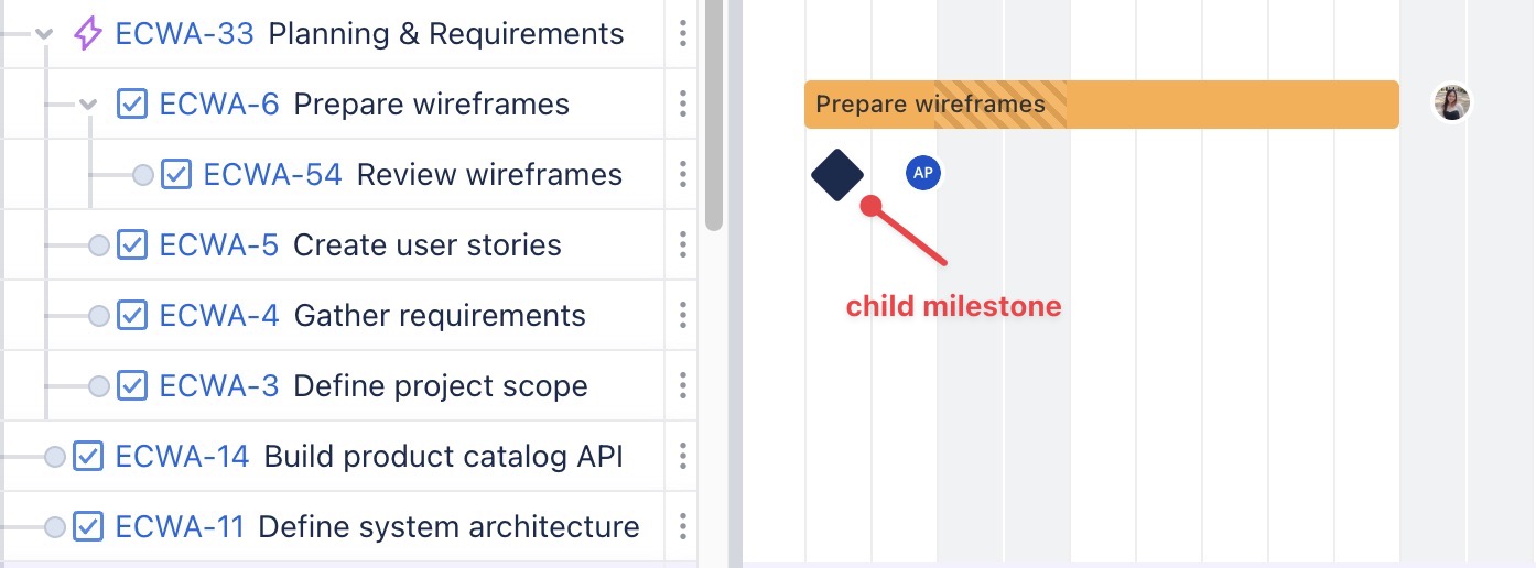 Create child milestone: Adds a milestone as a child under the selected task. | ![]() |