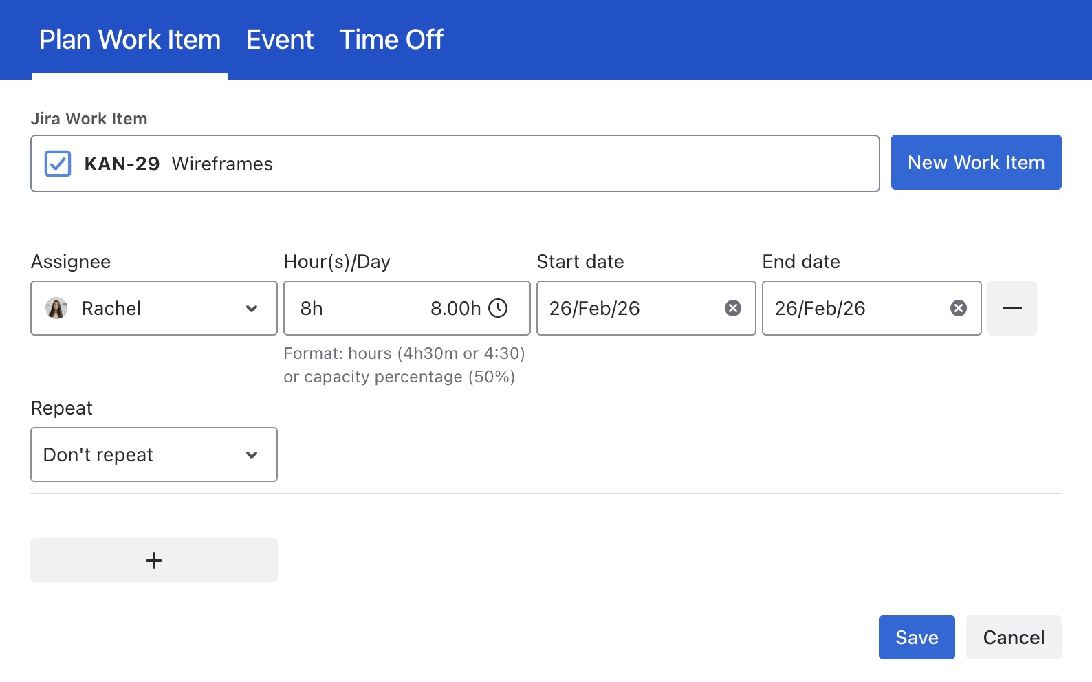 Planning via the Jira Work Item Detail Panel