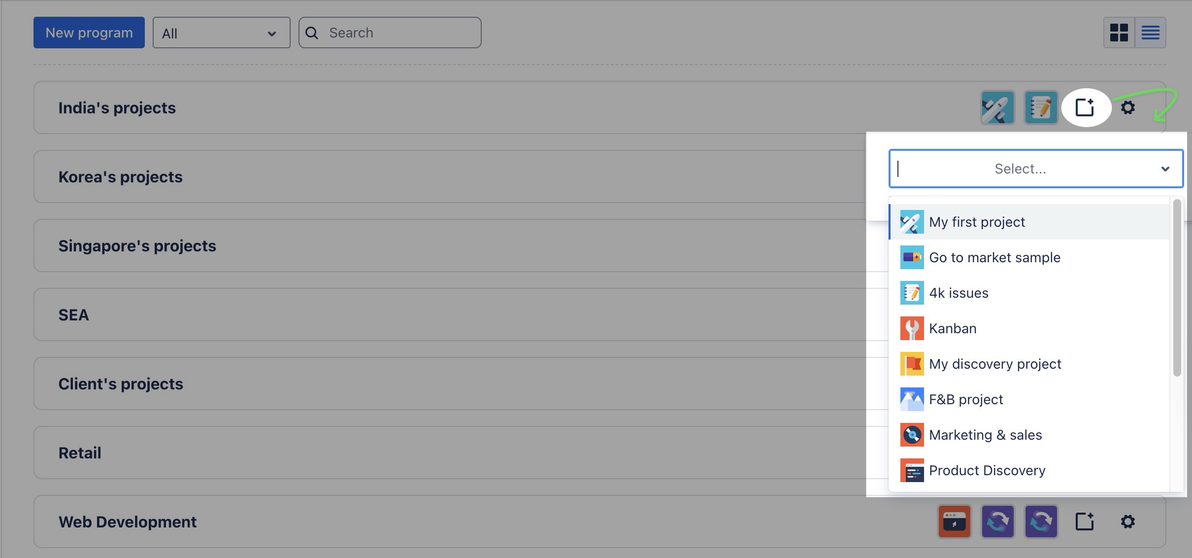 button next to the program name. Then, select the desired project from the drop-down menu.