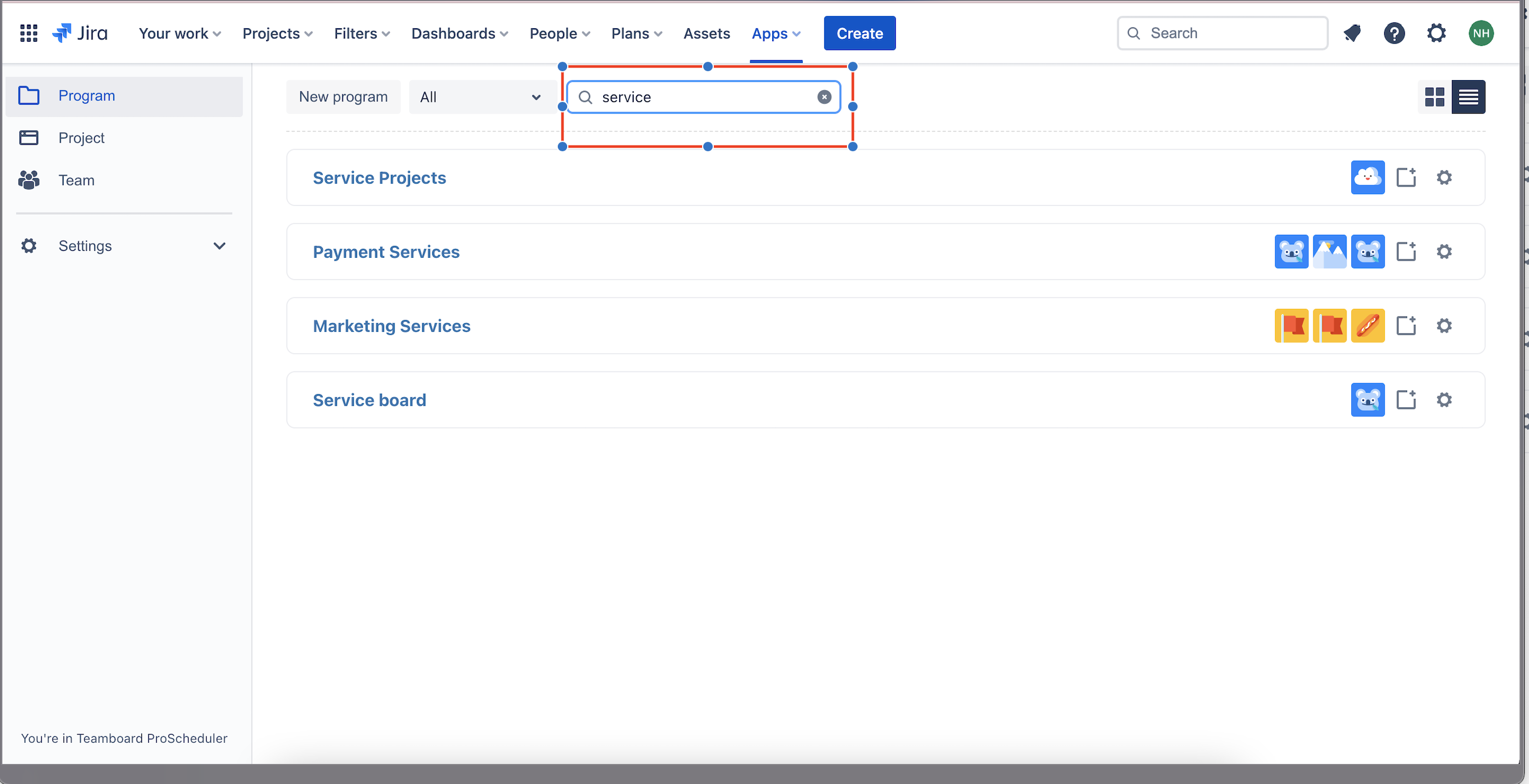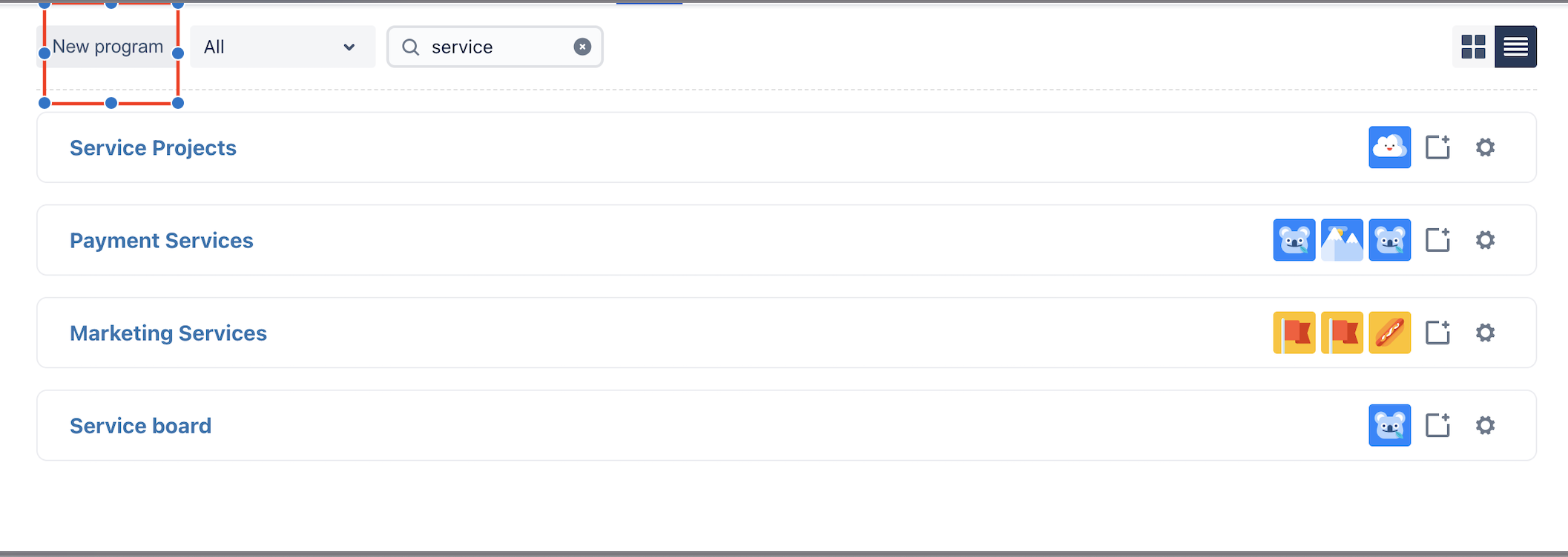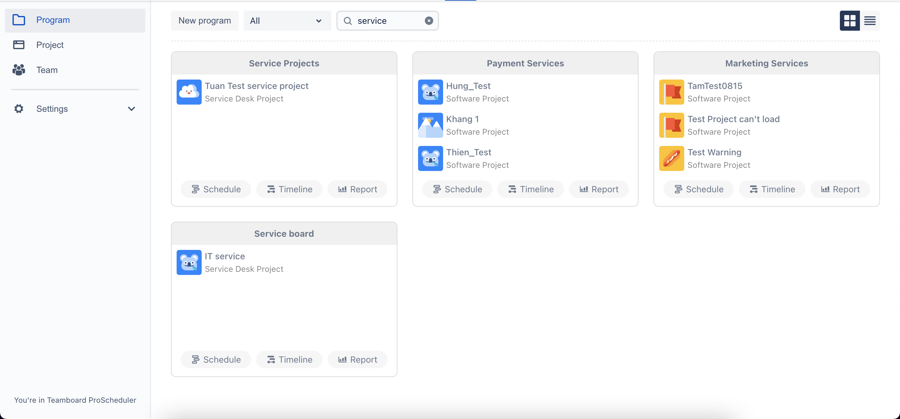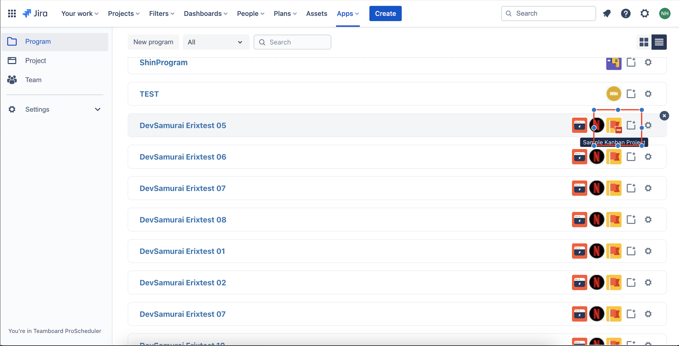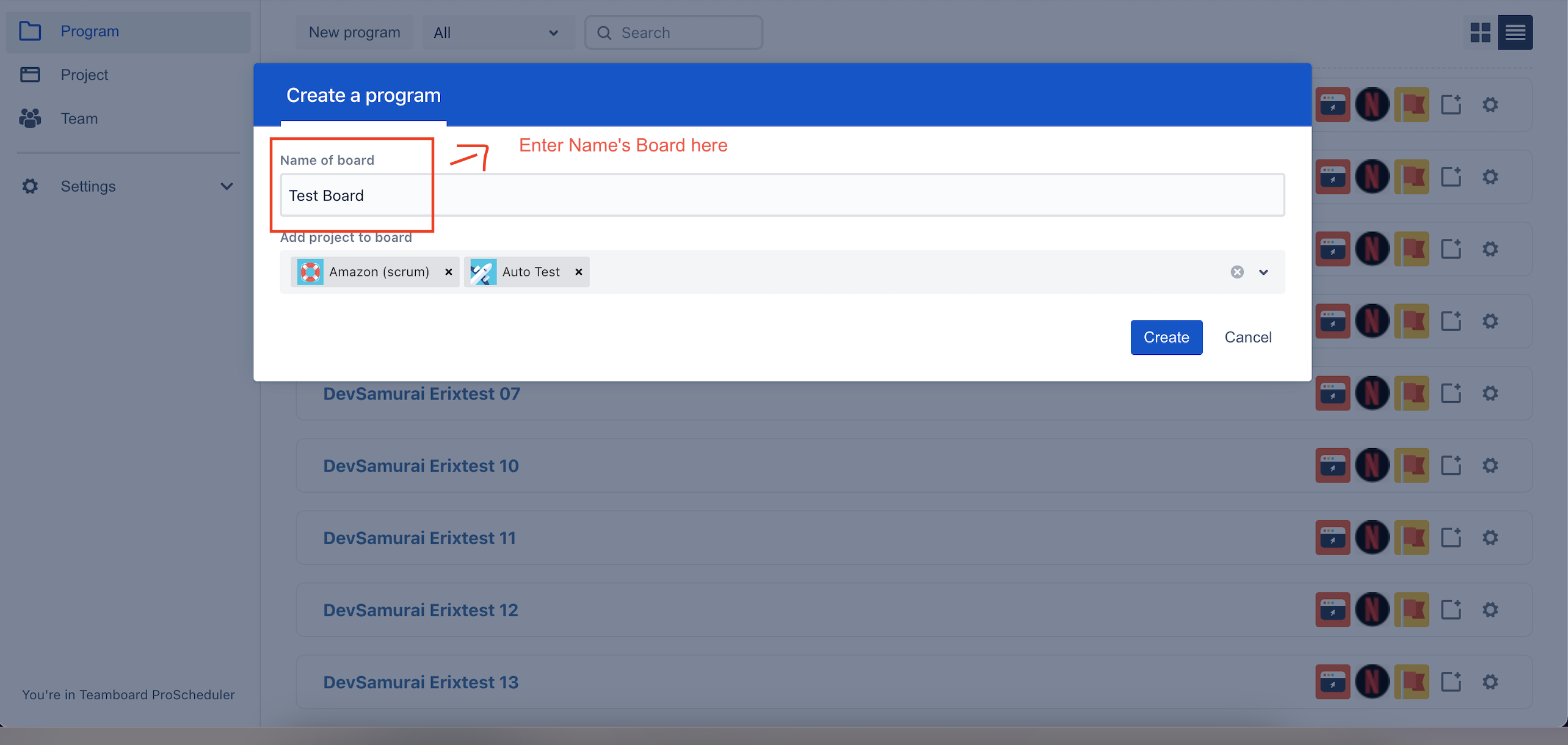 Click on the New program, a dialog shows up to create a new program board from group of projects