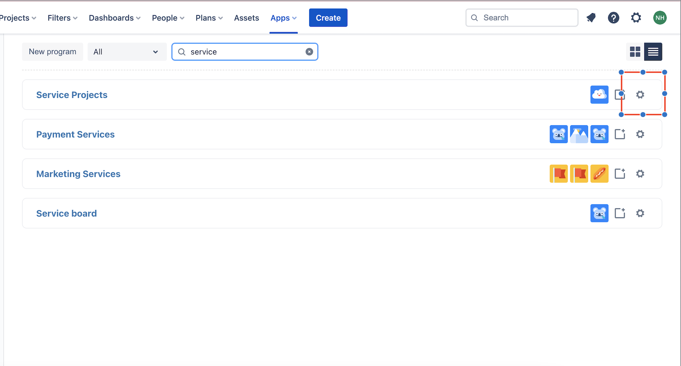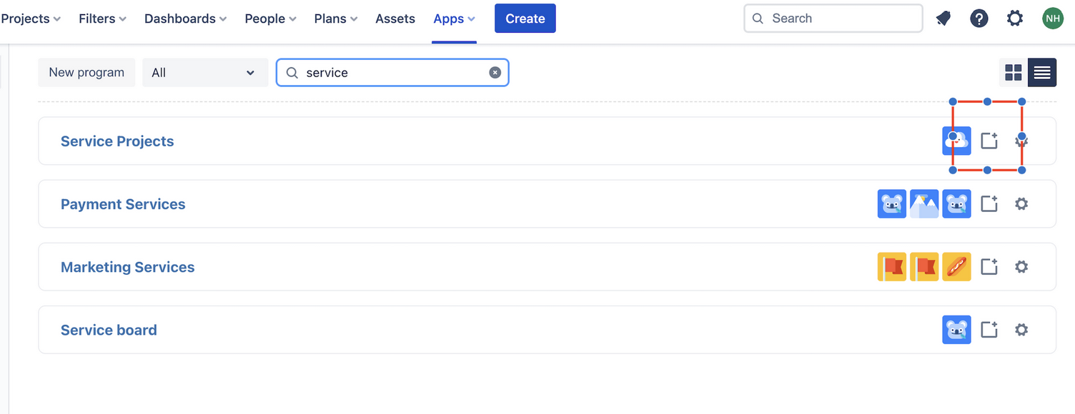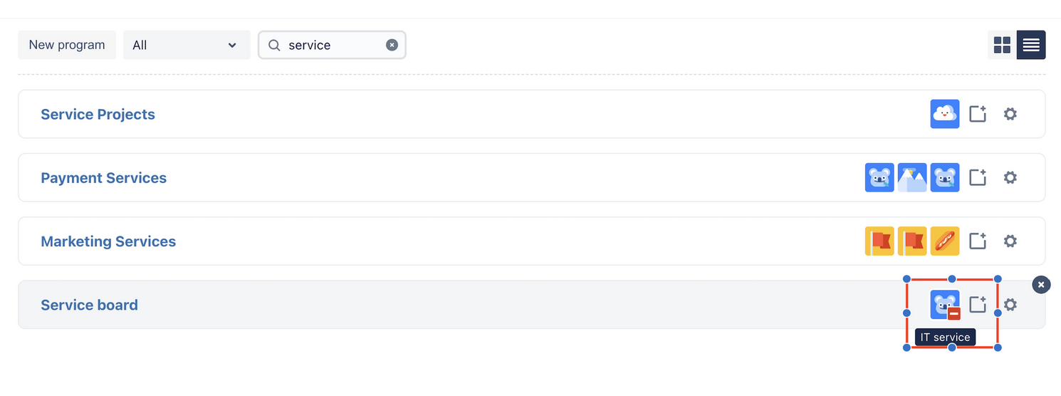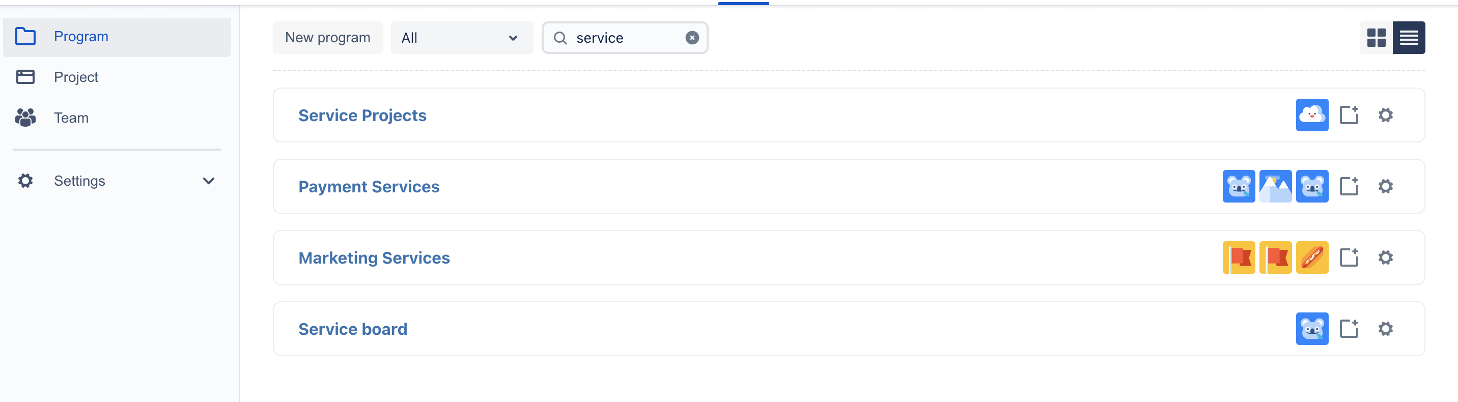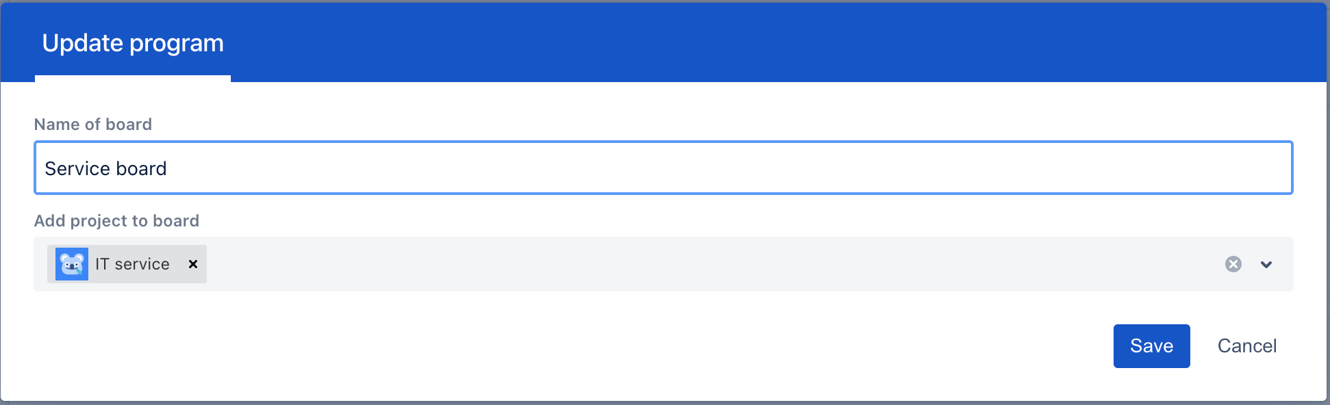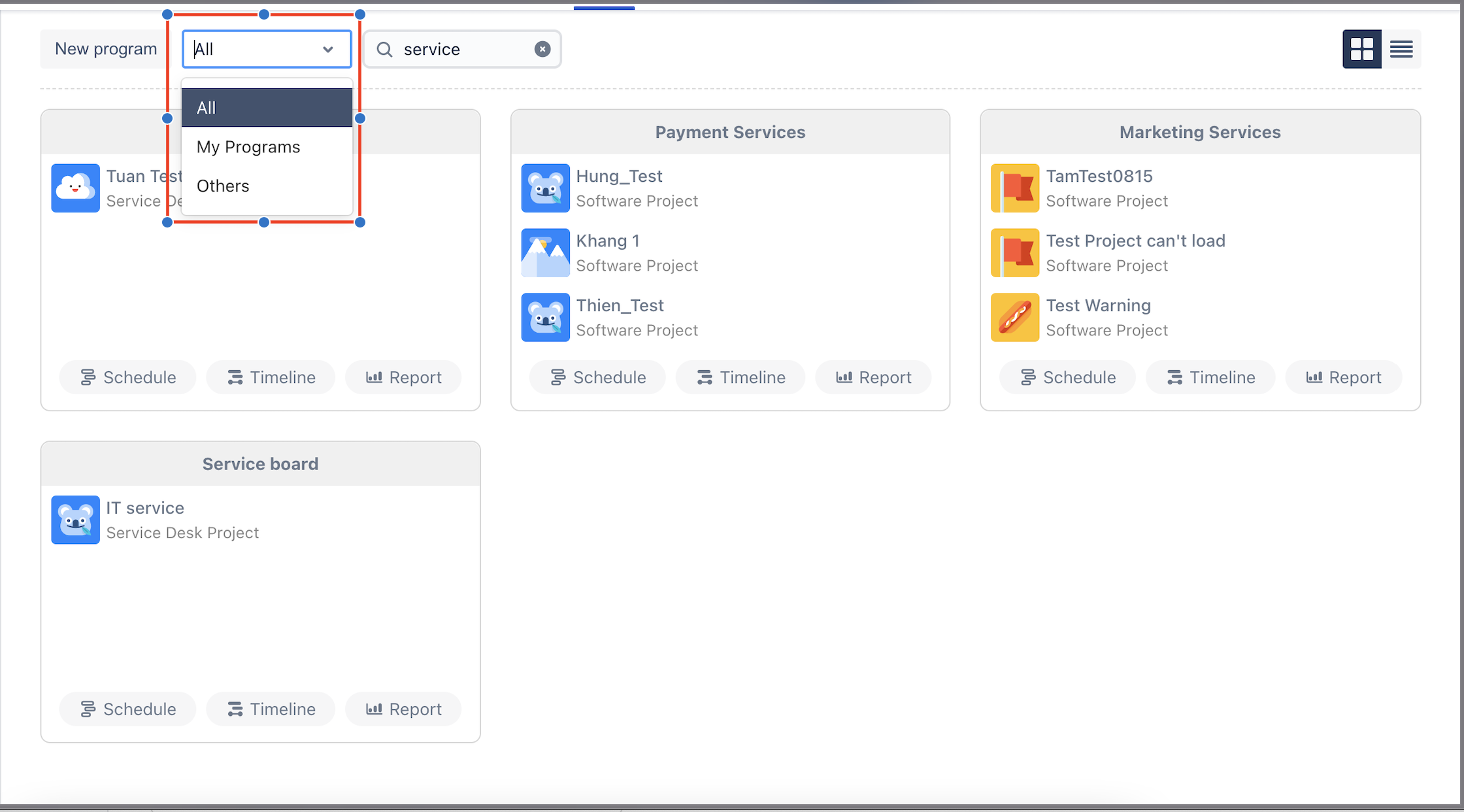 Click on the New program, a dialog shows up to create a new program board from group of projects
