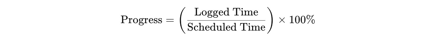 Auto: Progress is automatically calculated by comparing the logged time to the scheduled time.