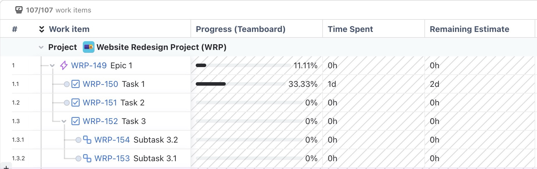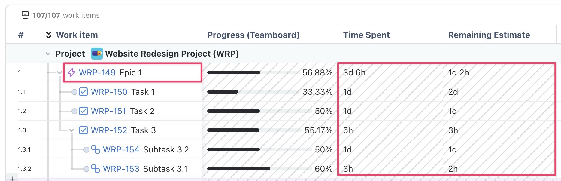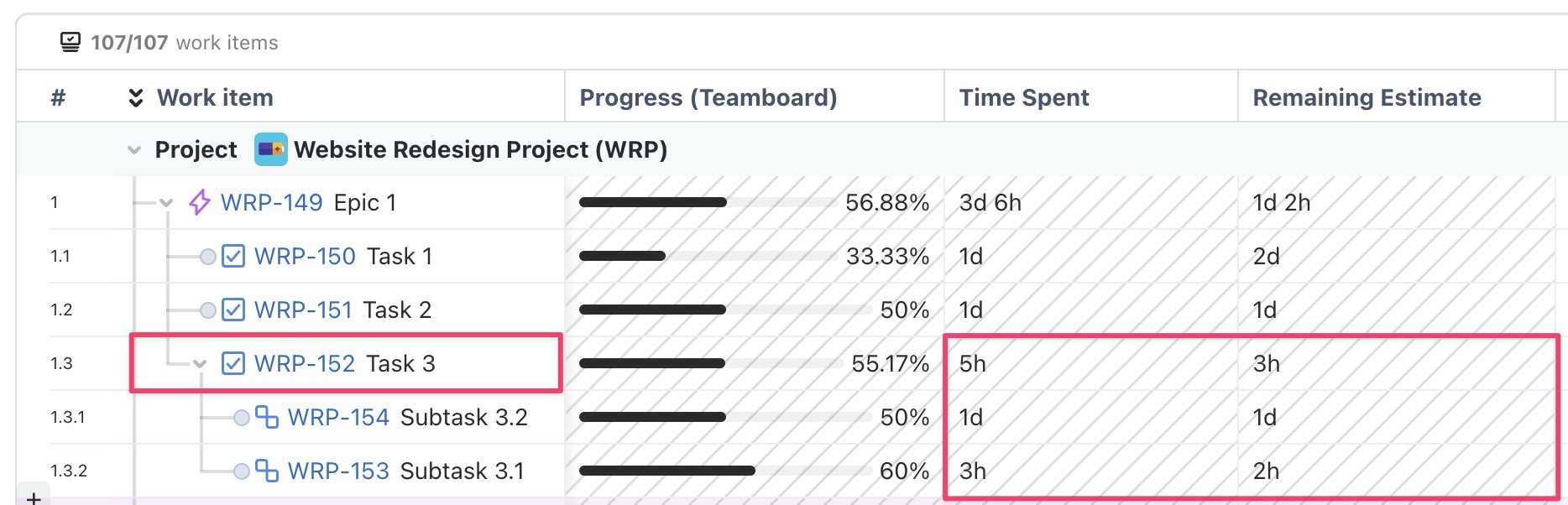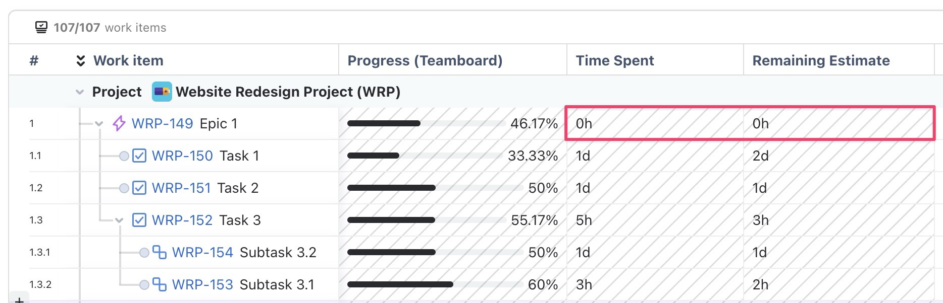 TeamBoard can also calculate progress using Jira’s native Time Spent field. This ensures progress is always calculated accurately based on real work logged in Jira.
