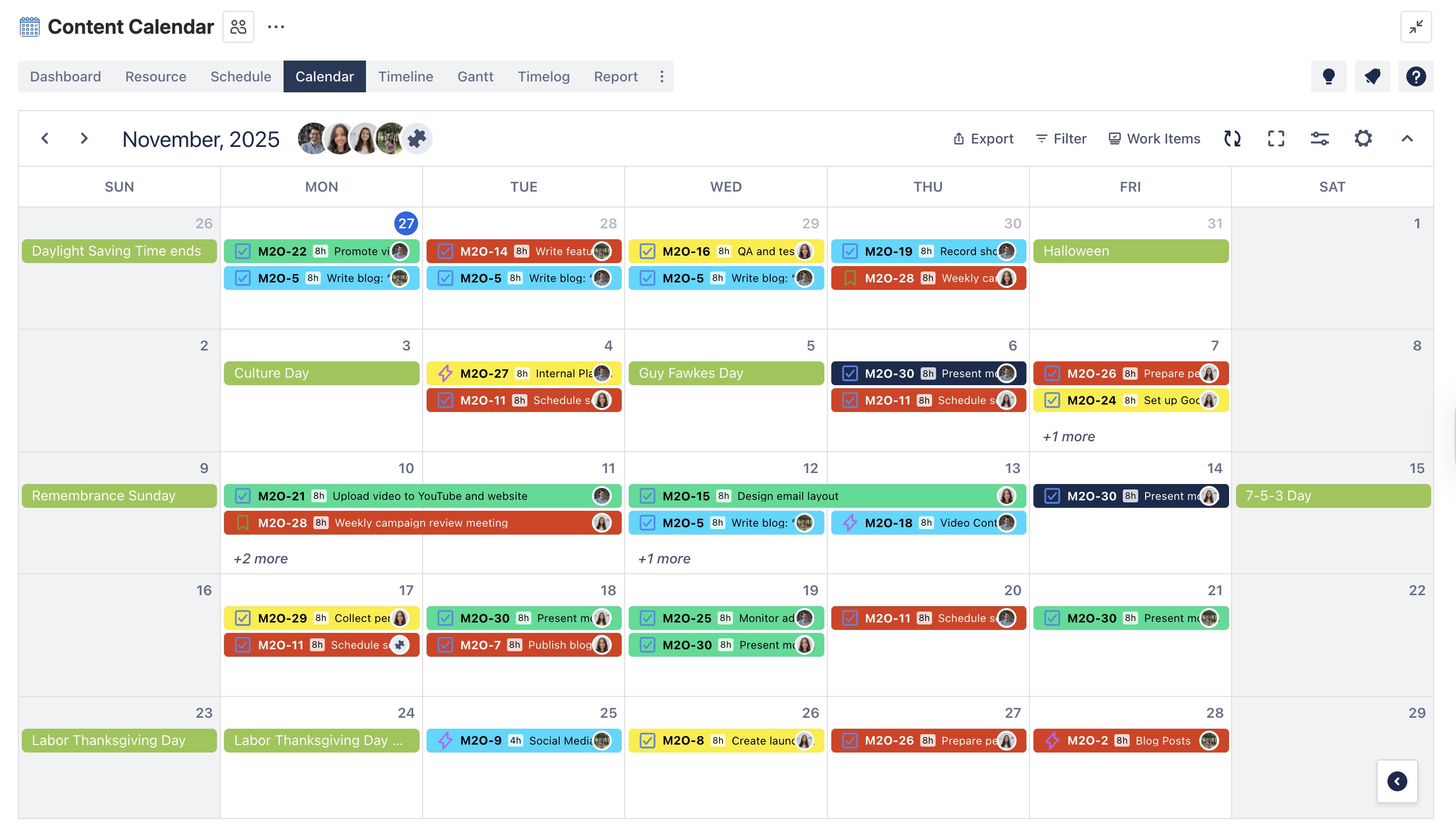 It helps teams manage their schedules by providing features like day, week, and month views, the ability to switch between projects, and advanced filtering to see specific tasks at a glance. It also allows for exporting to external calendars like Google Calendar and Outlook via ICS feeds.