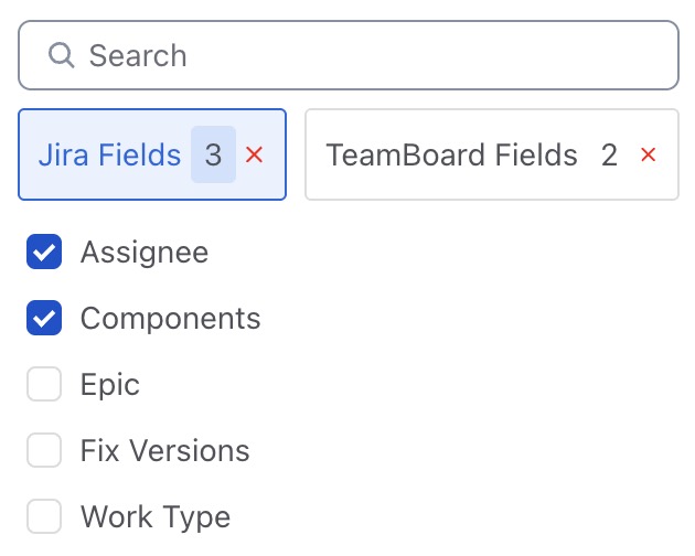 TeamBoard supports grouping by additional Jira custom fields and TeamBoard fields, making it easier to organize and analyze data.