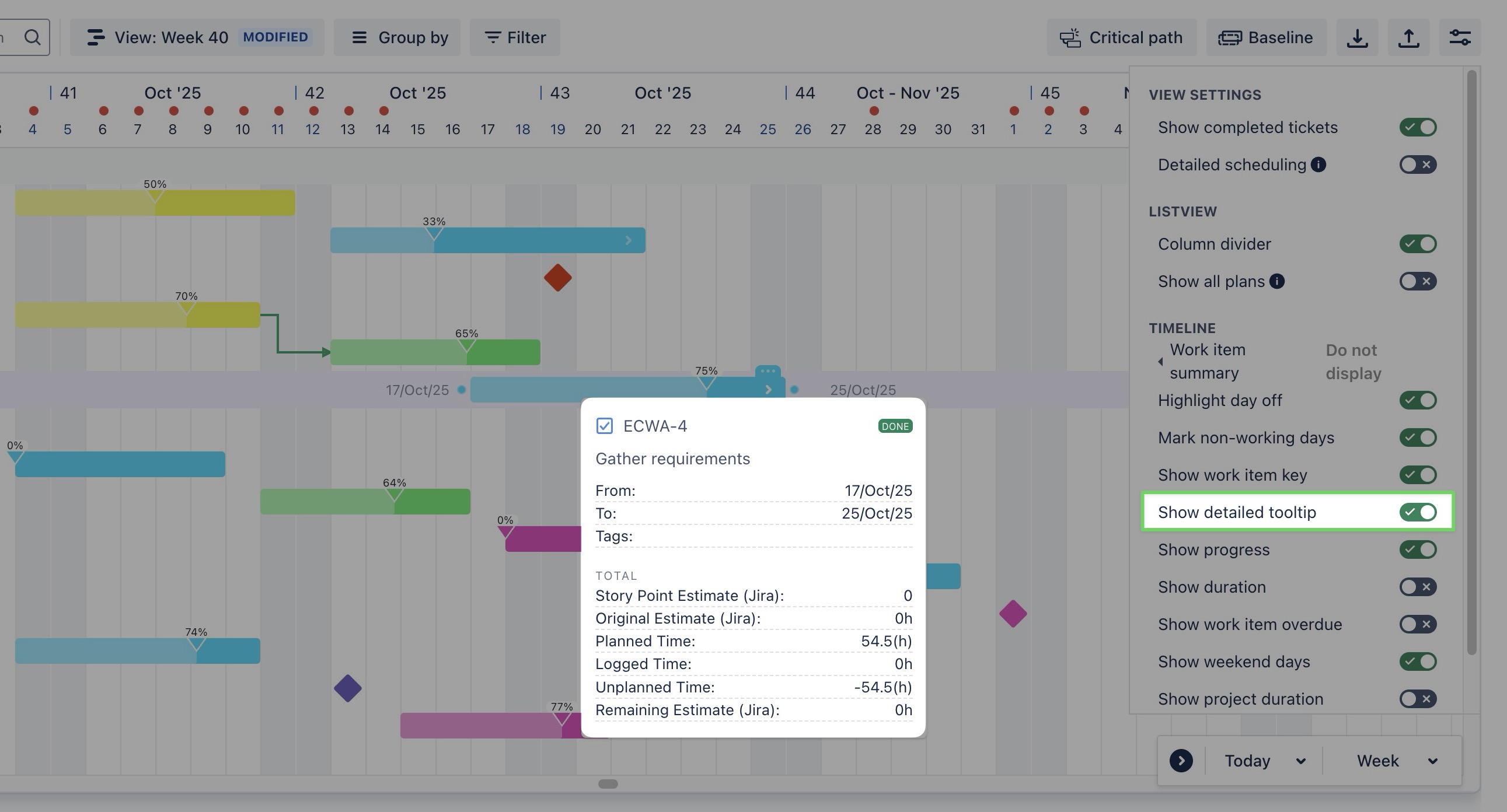 Show detailed tooltip: When enabled, a tooltip with details about the task is displayed when hovering over a task. | ![]() |