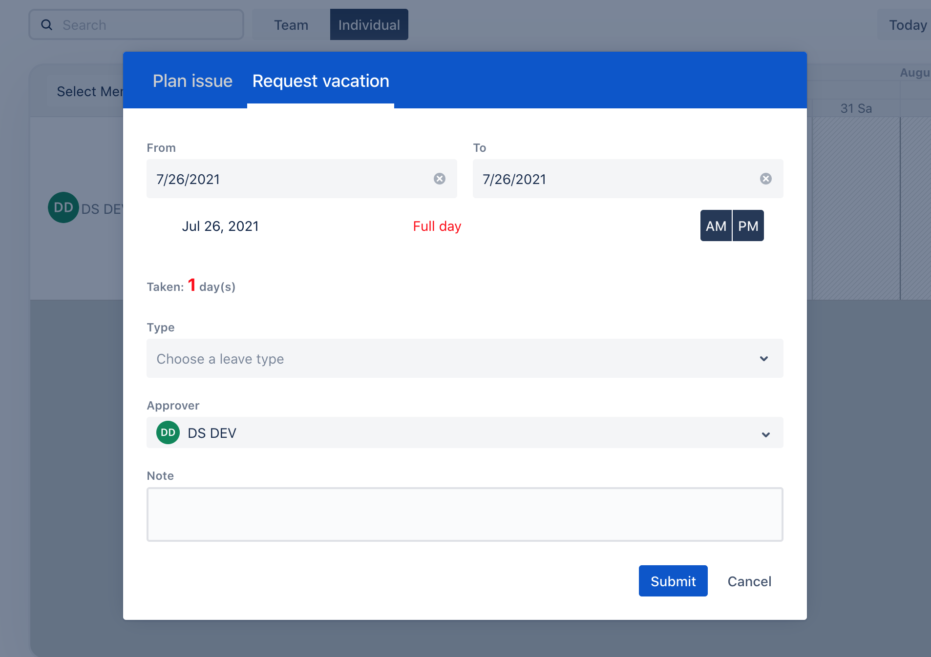 Schedule vacation