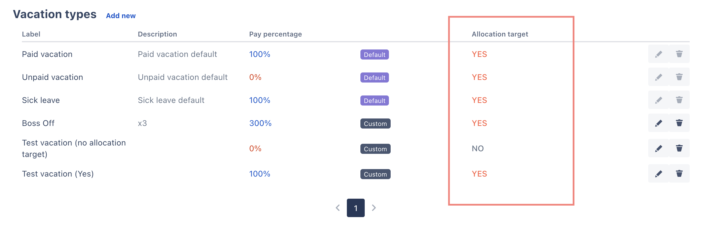 Vacation allocation deducting target: you can now flexibly mark which vacation type will be deducted from vacation allocation
