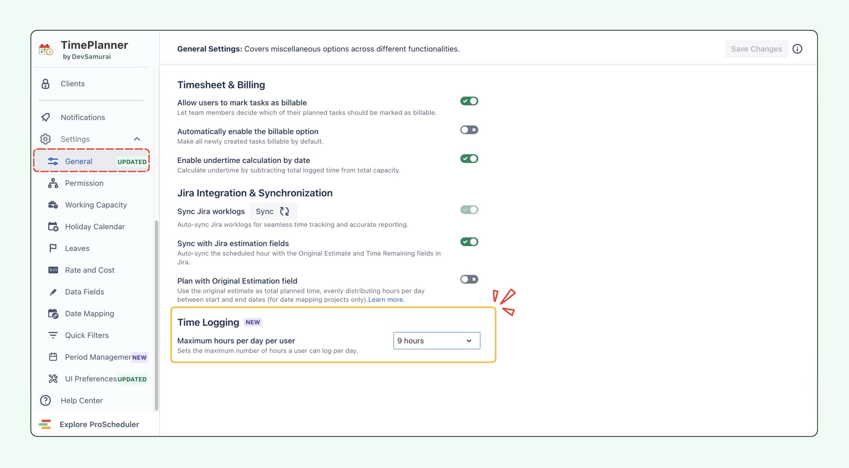 TimePlanner now enables administrators to set a limit on the number of hours a user can log in a 24-hour period. This ensures team members don't exceed their daily capacity, keeping worklog reports accurate for payroll and budgeting.