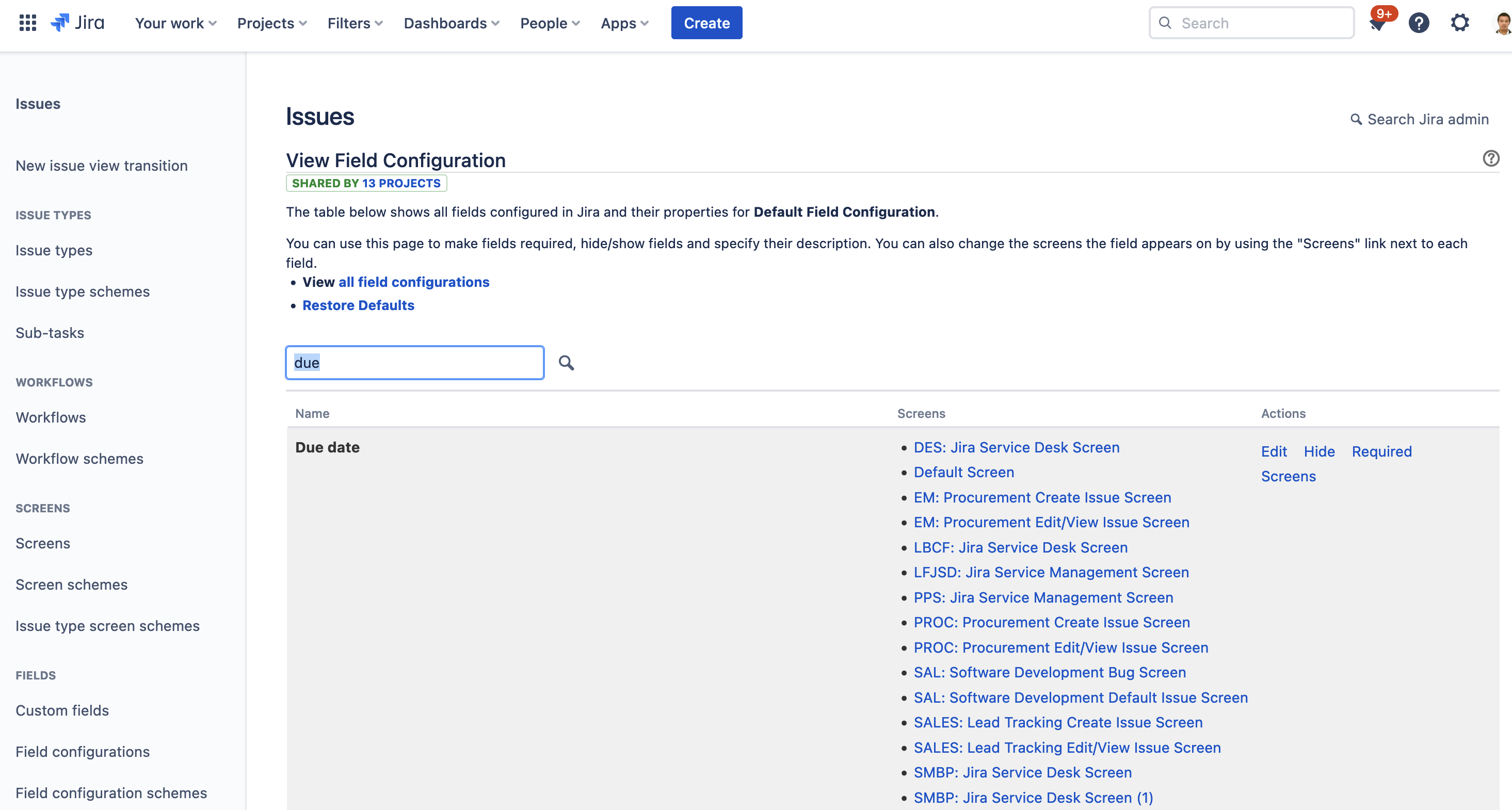 Select Field configurations on the left menu. Find the appropriate configuration and click Configure.