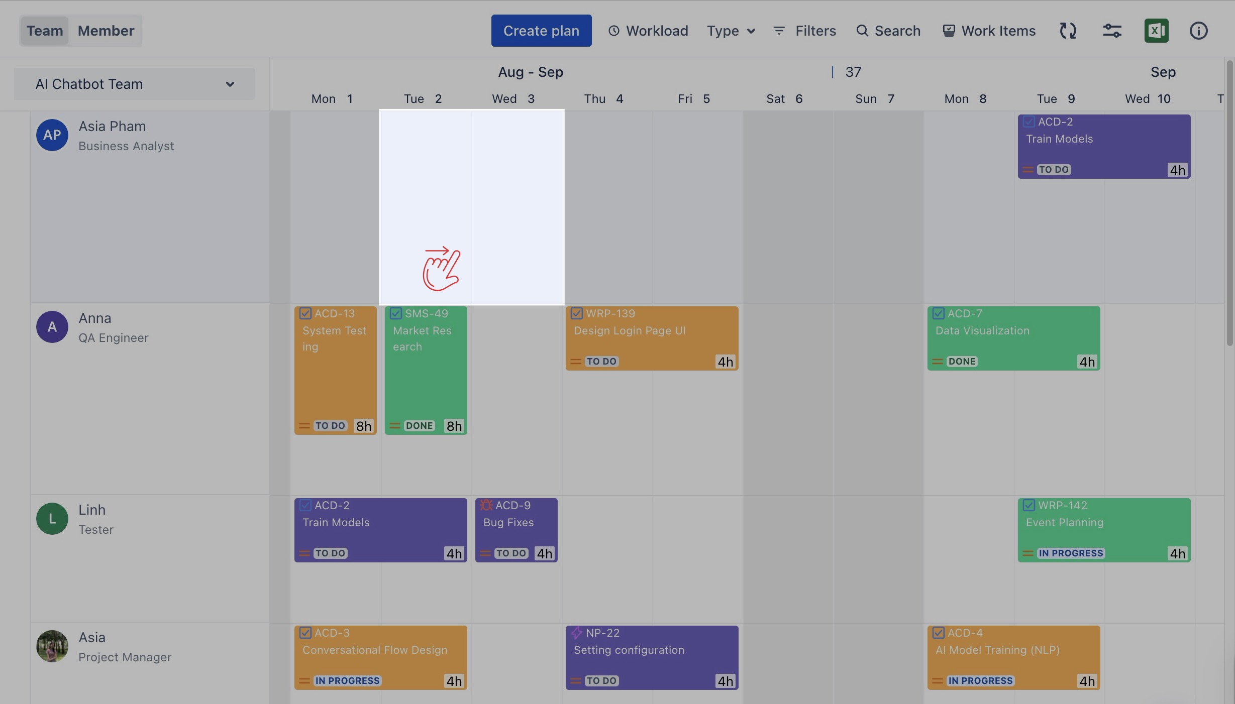 Click on a specific date or drag across a range of dates to open the Planning Dialog.