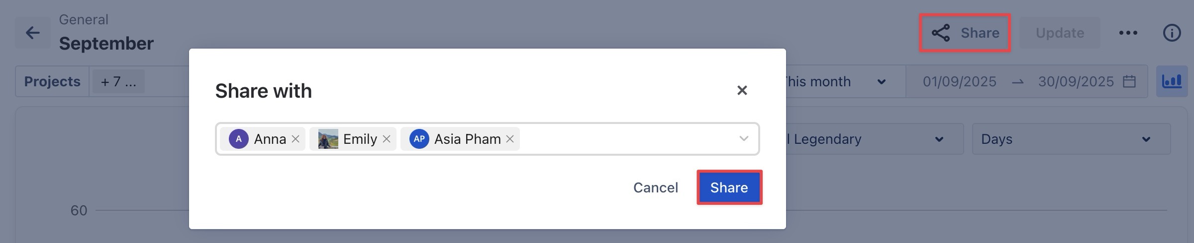 Share button in the top right corner.Click Share to apply the changes.