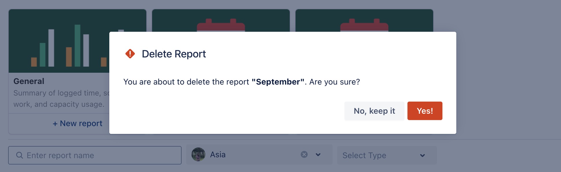 A confirmation prompt will appear. Click Yes to permanently delete the report.