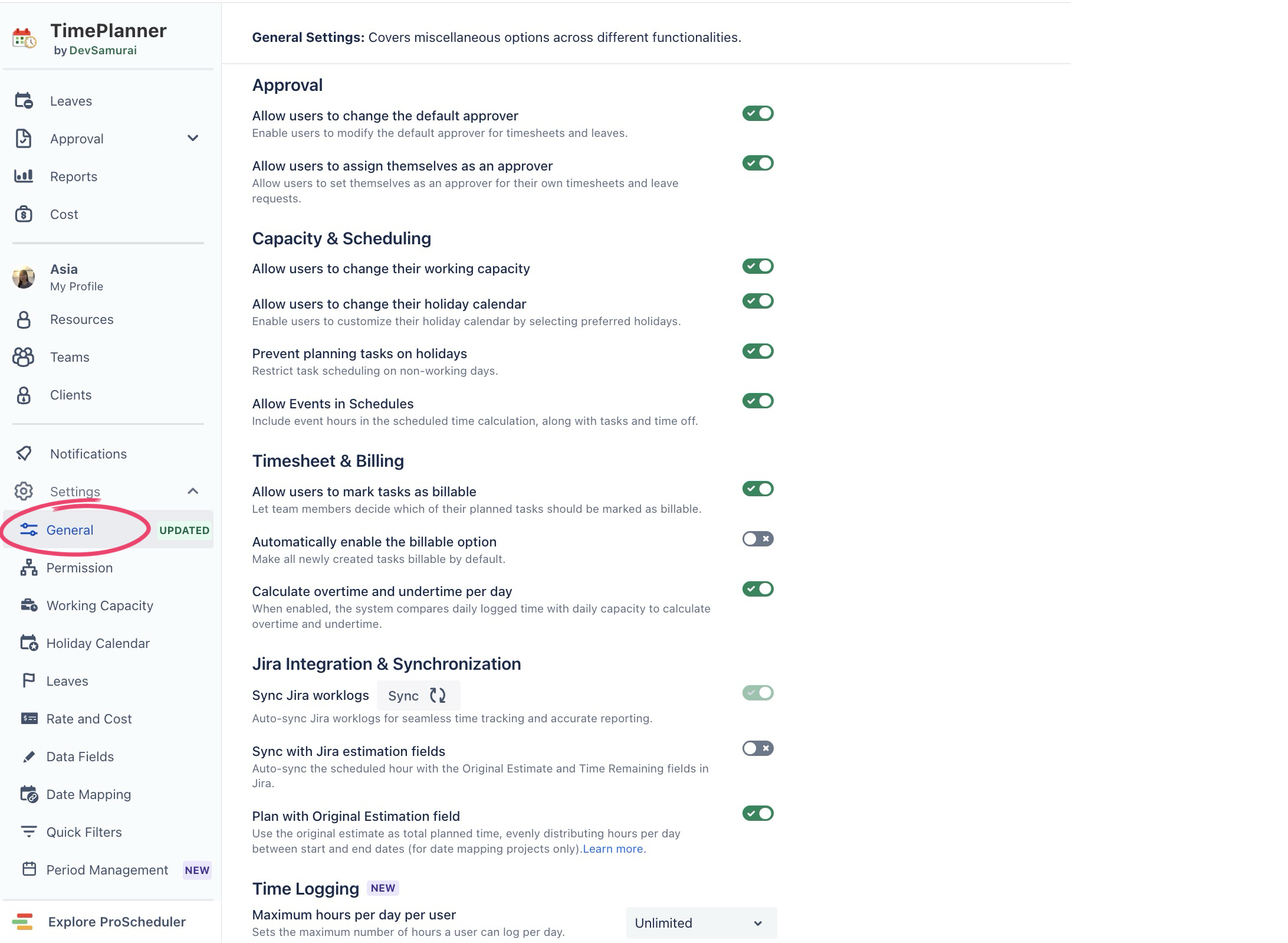 Only users with the App Admin role can access and manage General Settings in TimePlanner.