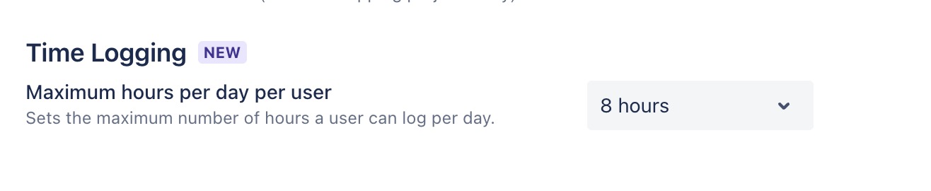 Time Logging | Maximum hours per day per user | ![]() The Maximum hours per day per user setting allows administrators to limit how many hours a user can log within a 24-hour period. How it works