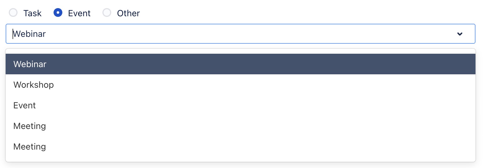 Event: Search for an existing event from the dropdown menu.