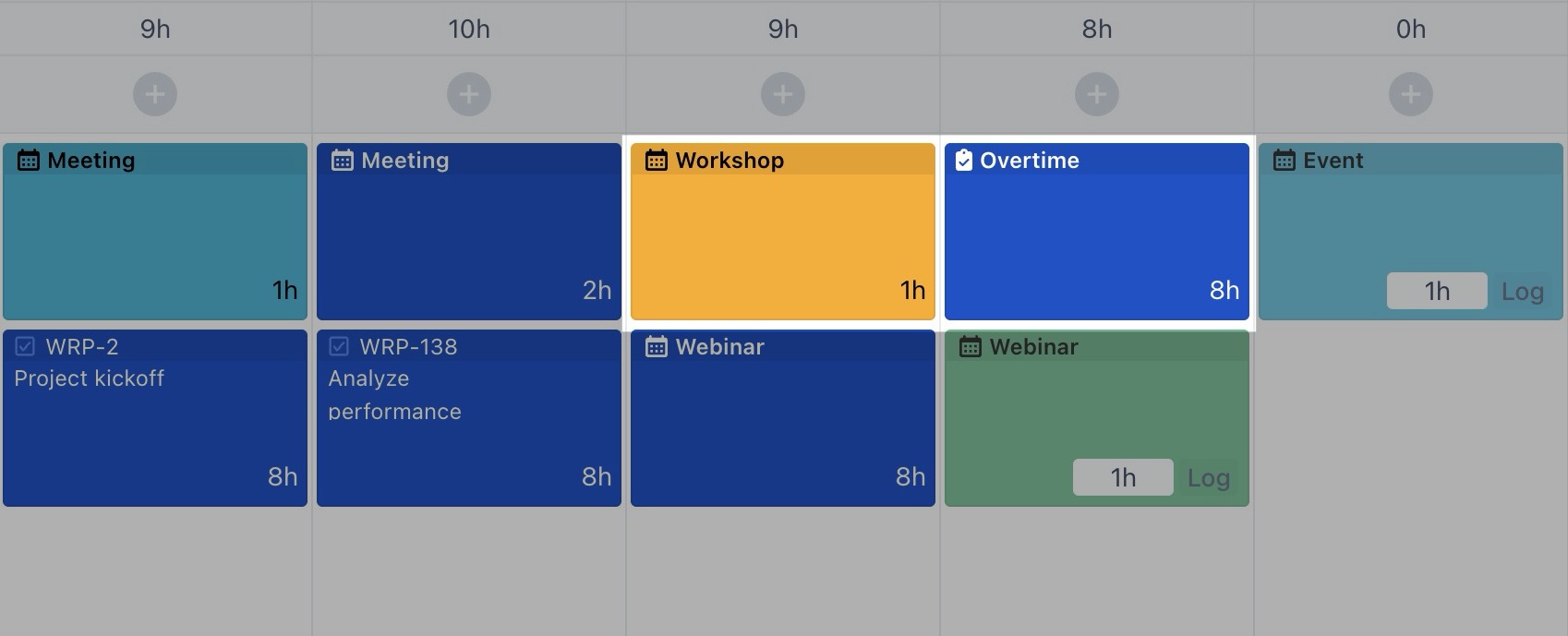 TeamBoard TimePlanner allows users to log time not only for Jira tasks but also for specific events and custom tasks, such as meetings, workshops, or other non-standard activities. These activities are separate from Jira issues and can only be created or managed within the TimePlanner app.