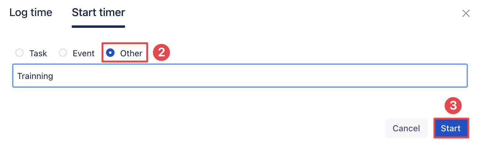 Log Time using the Start Timer