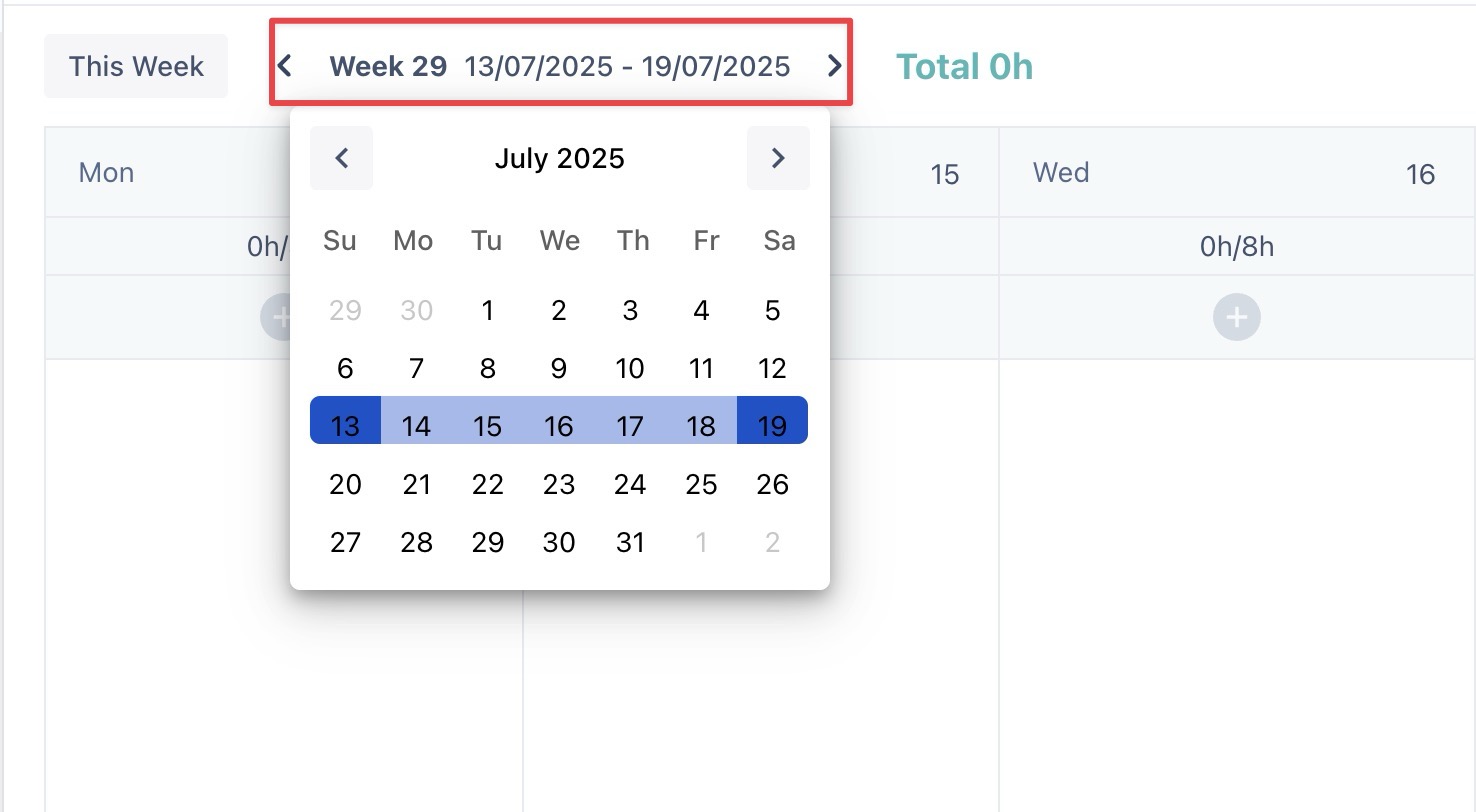 Select the date and time range for which you want to log your time.