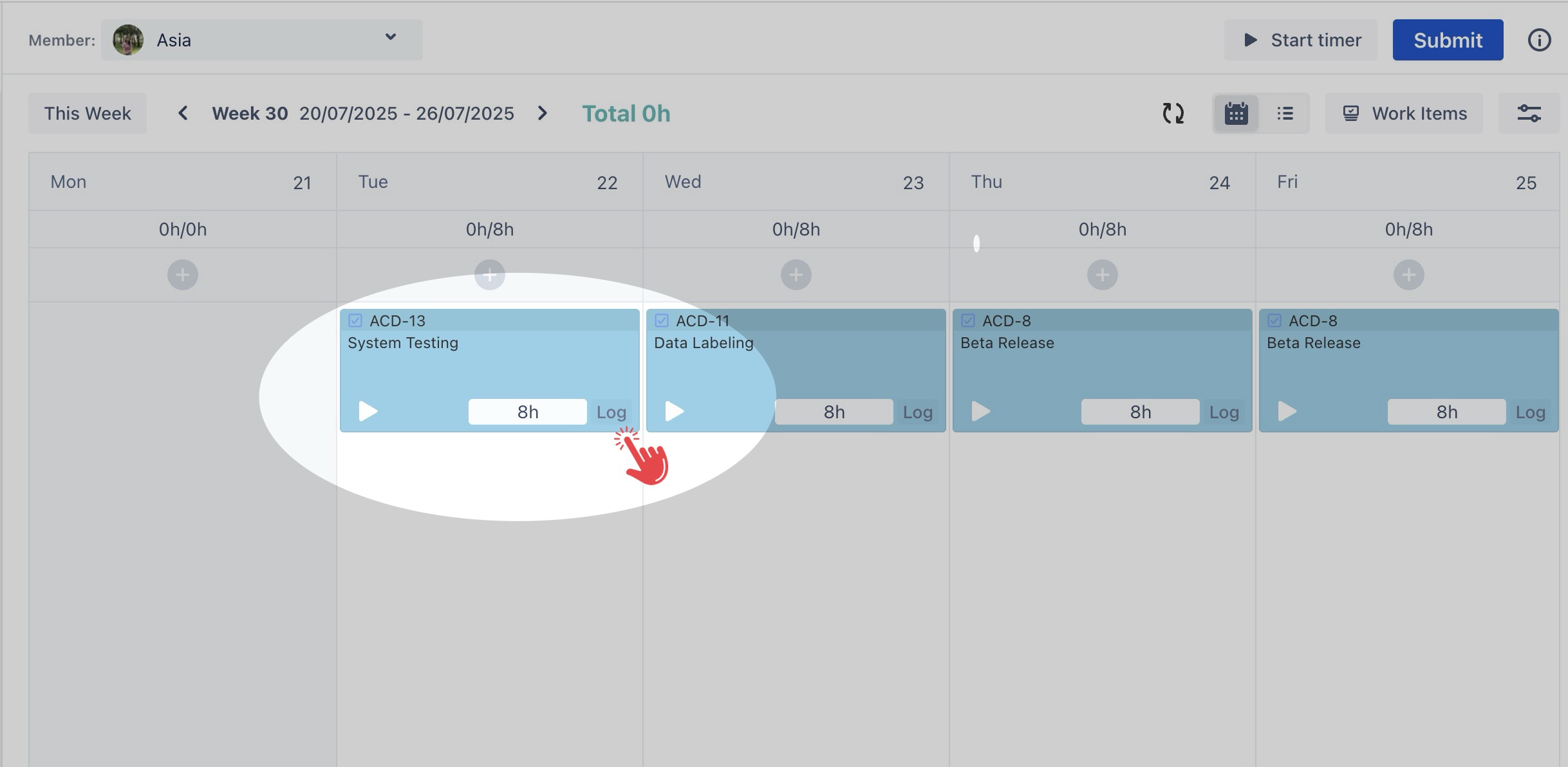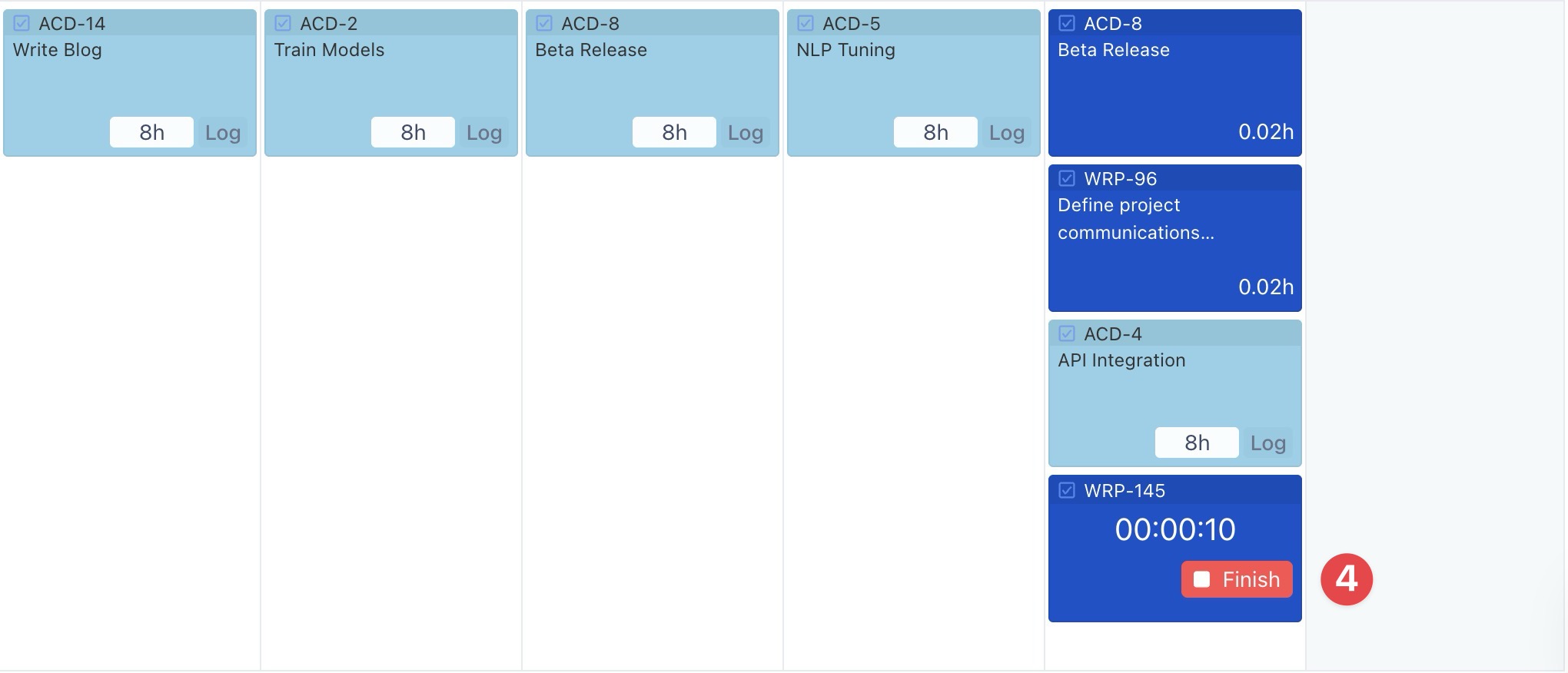 (Start timer button) on the task card to begin tracking the time for that task.Once you complete the task, click Finish.