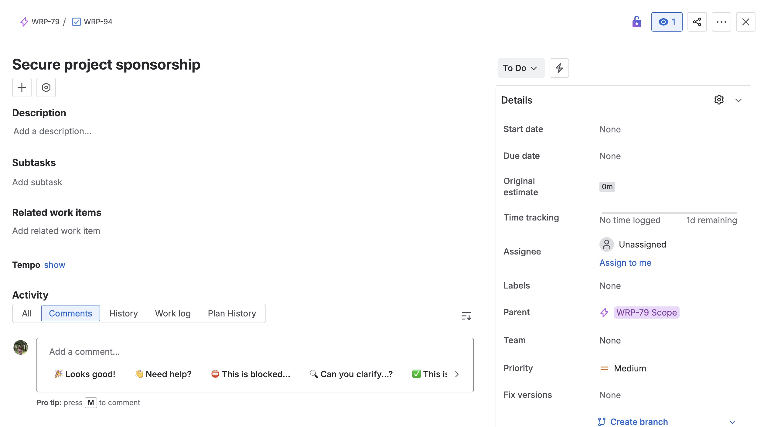 Open the Jira work item you want to log time for.